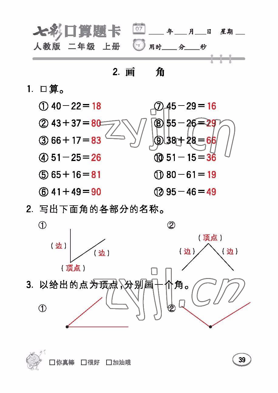注:目前有些书本章节名称可能整理的还不是很完善,但都是按照顺序排列的,请同学们按照顺序仔细查找。练习册 2022年七彩口算题卡二年级数学上册人教版 答案主要是用来给同学们做完题方便对答案用的,请勿直接抄袭。