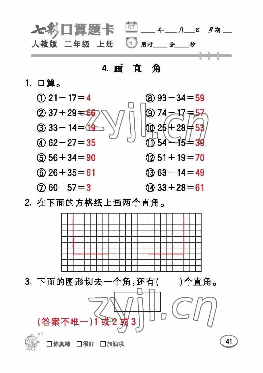 注:目前有些书本章节名称可能整理的还不是很完善,但都是按照顺序排列的,请同学们按照顺序仔细查找。练习册 2022年七彩口算题卡二年级数学上册人教版 答案主要是用来给同学们做完题方便对答案用的,请勿直接抄袭。
