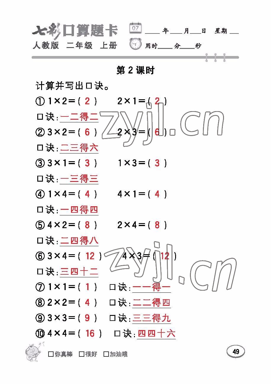 注:目前有些书本章节名称可能整理的还不是很完善,但都是按照顺序排列的,请同学们按照顺序仔细查找。练习册 2022年七彩口算题卡二年级数学上册人教版 答案主要是用来给同学们做完题方便对答案用的,请勿直接抄袭。