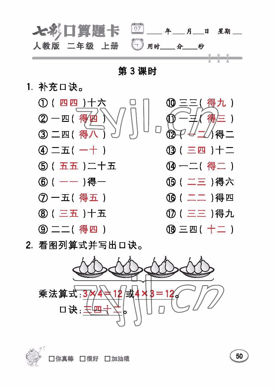 注:目前有些书本章节名称可能整理的还不是很完善,但都是按照顺序排列的,请同学们按照顺序仔细查找。练习册 2022年七彩口算题卡二年级数学上册人教版 答案主要是用来给同学们做完题方便对答案用的,请勿直接抄袭。