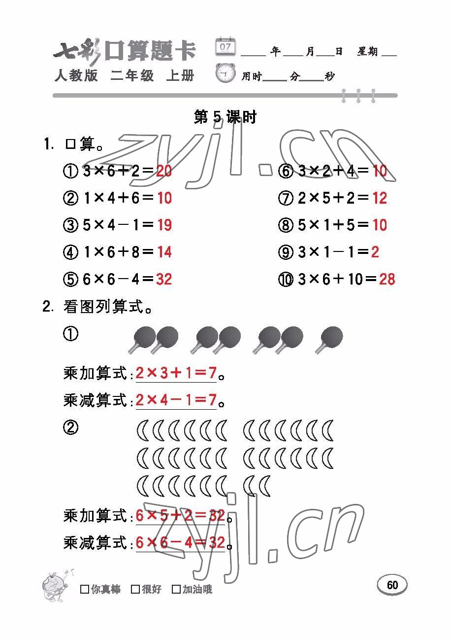 注:目前有些书本章节名称可能整理的还不是很完善,但都是按照顺序排列的,请同学们按照顺序仔细查找。练习册 2022年七彩口算题卡二年级数学上册人教版 答案主要是用来给同学们做完题方便对答案用的,请勿直接抄袭。