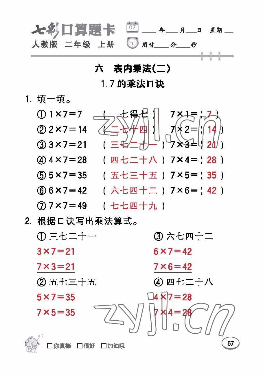 注:目前有些书本章节名称可能整理的还不是很完善,但都是按照顺序排列的,请同学们按照顺序仔细查找。练习册 2022年七彩口算题卡二年级数学上册人教版 答案主要是用来给同学们做完题方便对答案用的,请勿直接抄袭。
