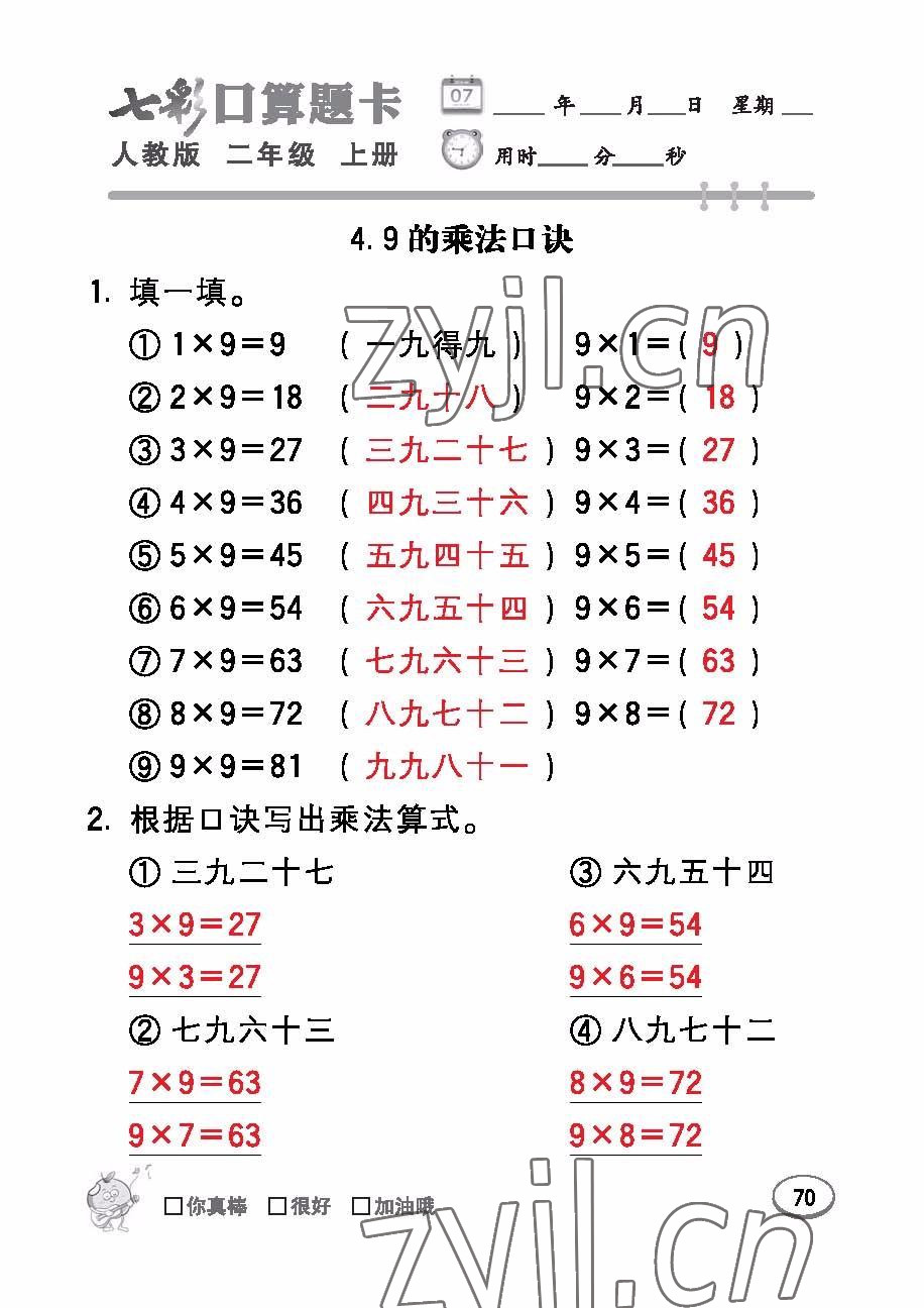 注:目前有些书本章节名称可能整理的还不是很完善,但都是按照顺序排列的,请同学们按照顺序仔细查找。练习册 2022年七彩口算题卡二年级数学上册人教版 答案主要是用来给同学们做完题方便对答案用的,请勿直接抄袭。