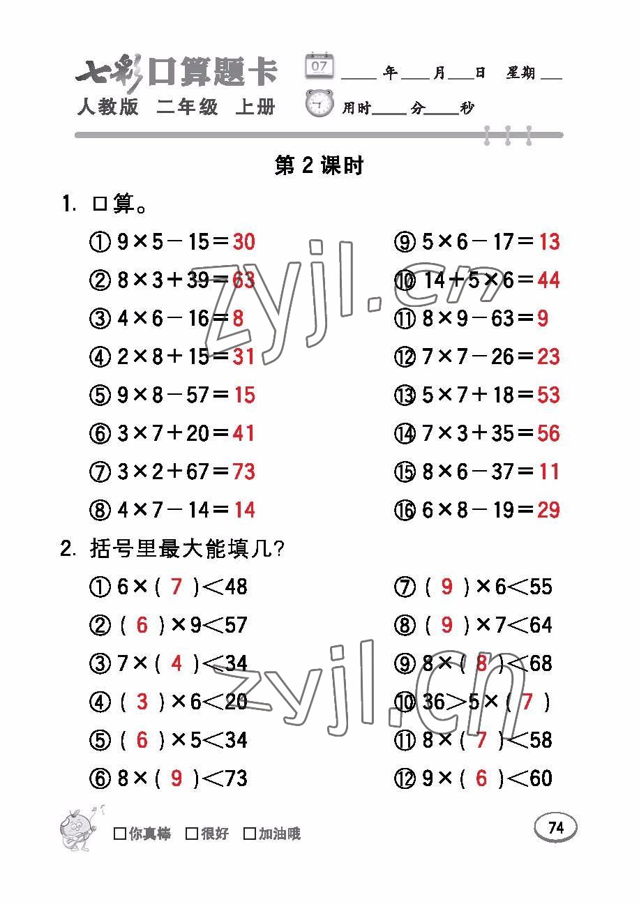 注:目前有些书本章节名称可能整理的还不是很完善,但都是按照顺序排列的,请同学们按照顺序仔细查找。练习册 2022年七彩口算题卡二年级数学上册人教版 答案主要是用来给同学们做完题方便对答案用的,请勿直接抄袭。