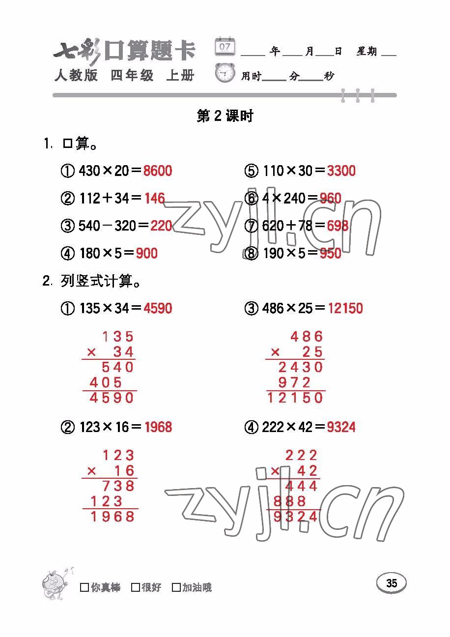 注:目前有些书本章节名称可能整理的还不是很完善,但都是按照顺序排列的,请同学们按照顺序仔细查找。练习册 2022年七彩口算题卡四年级数学上册人教版 答案主要是用来给同学们做完题方便对答案用的,请勿直接抄袭。