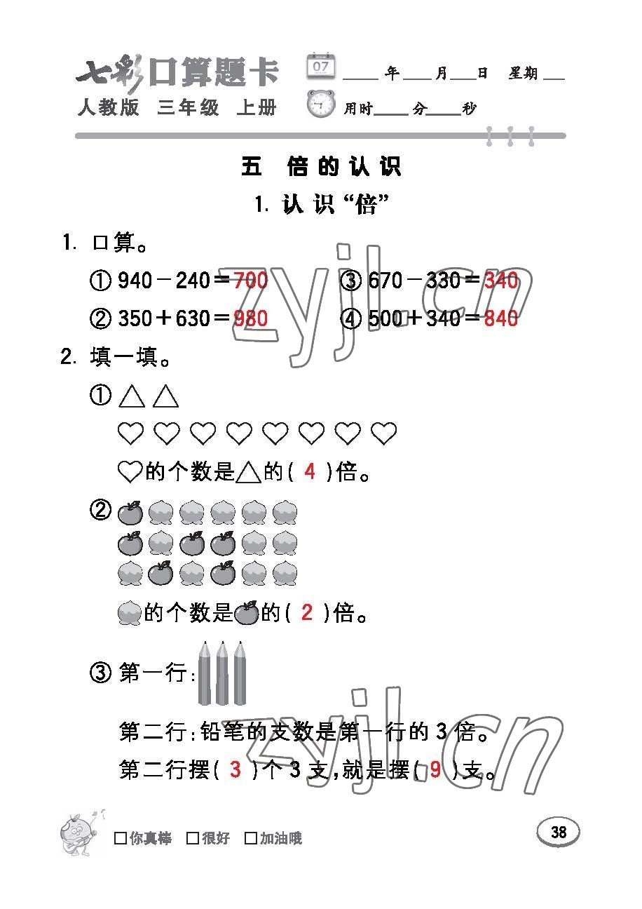 注:目前有些书本章节名称可能整理的还不是很完善,但都是按照顺序排列的,请同学们按照顺序仔细查找。练习册 2022年七彩口算题卡三年级数学上册人教版 答案主要是用来给同学们做完题方便对答案用的,请勿直接抄袭。