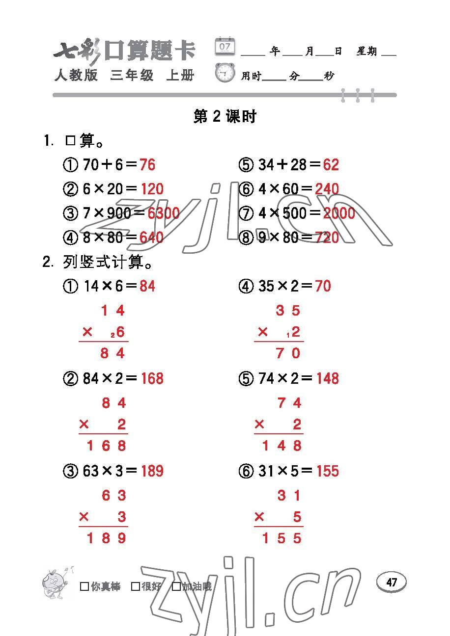 注:目前有些书本章节名称可能整理的还不是很完善,但都是按照顺序排列的,请同学们按照顺序仔细查找。练习册 2022年七彩口算题卡三年级数学上册人教版 答案主要是用来给同学们做完题方便对答案用的,请勿直接抄袭。