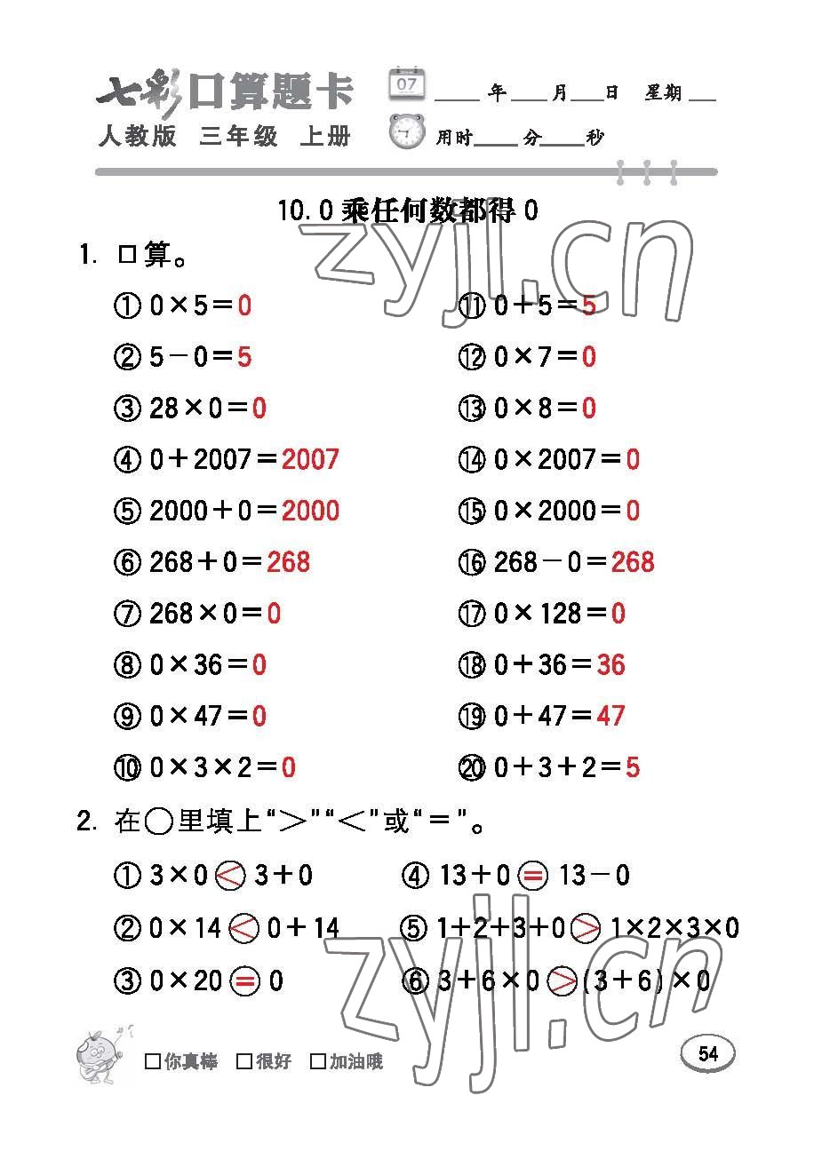 注:目前有些书本章节名称可能整理的还不是很完善,但都是按照顺序排列的,请同学们按照顺序仔细查找。练习册 2022年七彩口算题卡三年级数学上册人教版 答案主要是用来给同学们做完题方便对答案用的,请勿直接抄袭。