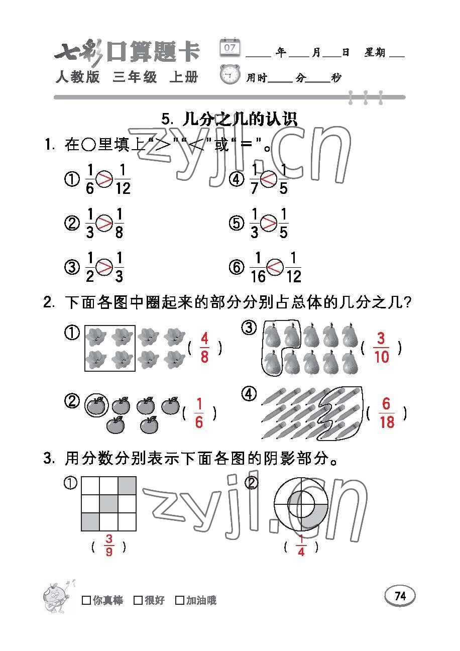 注:目前有些书本章节名称可能整理的还不是很完善,但都是按照顺序排列的,请同学们按照顺序仔细查找。练习册 2022年七彩口算题卡三年级数学上册人教版 答案主要是用来给同学们做完题方便对答案用的,请勿直接抄袭。