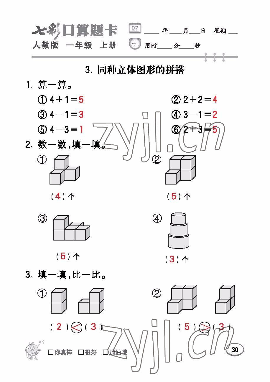 注:目前有些书本章节名称可能整理的还不是很完善,但都是按照顺序排列的,请同学们按照顺序仔细查找。练习册 2022年七彩口算题卡一年级数学上册人教版 答案主要是用来给同学们做完题方便对答案用的,请勿直接抄袭。