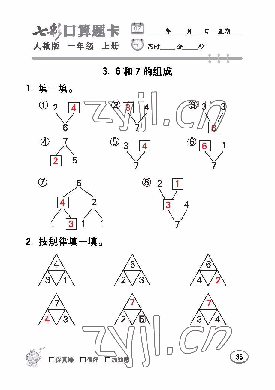 注:目前有些书本章节名称可能整理的还不是很完善,但都是按照顺序排列的,请同学们按照顺序仔细查找。练习册 2022年七彩口算题卡一年级数学上册人教版 答案主要是用来给同学们做完题方便对答案用的,请勿直接抄袭。