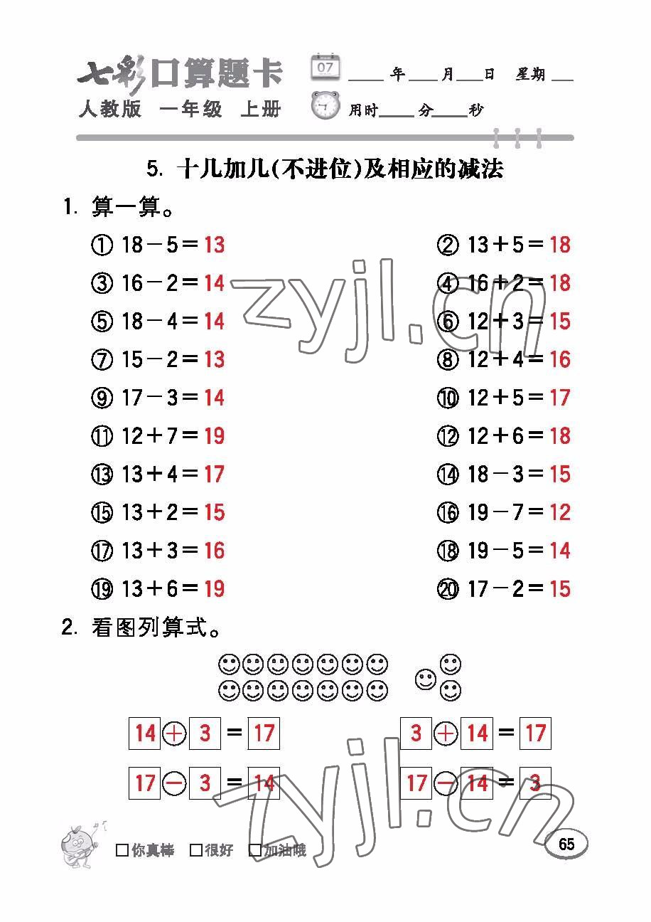 注:目前有些书本章节名称可能整理的还不是很完善,但都是按照顺序排列的,请同学们按照顺序仔细查找。练习册 2022年七彩口算题卡一年级数学上册人教版 答案主要是用来给同学们做完题方便对答案用的,请勿直接抄袭。