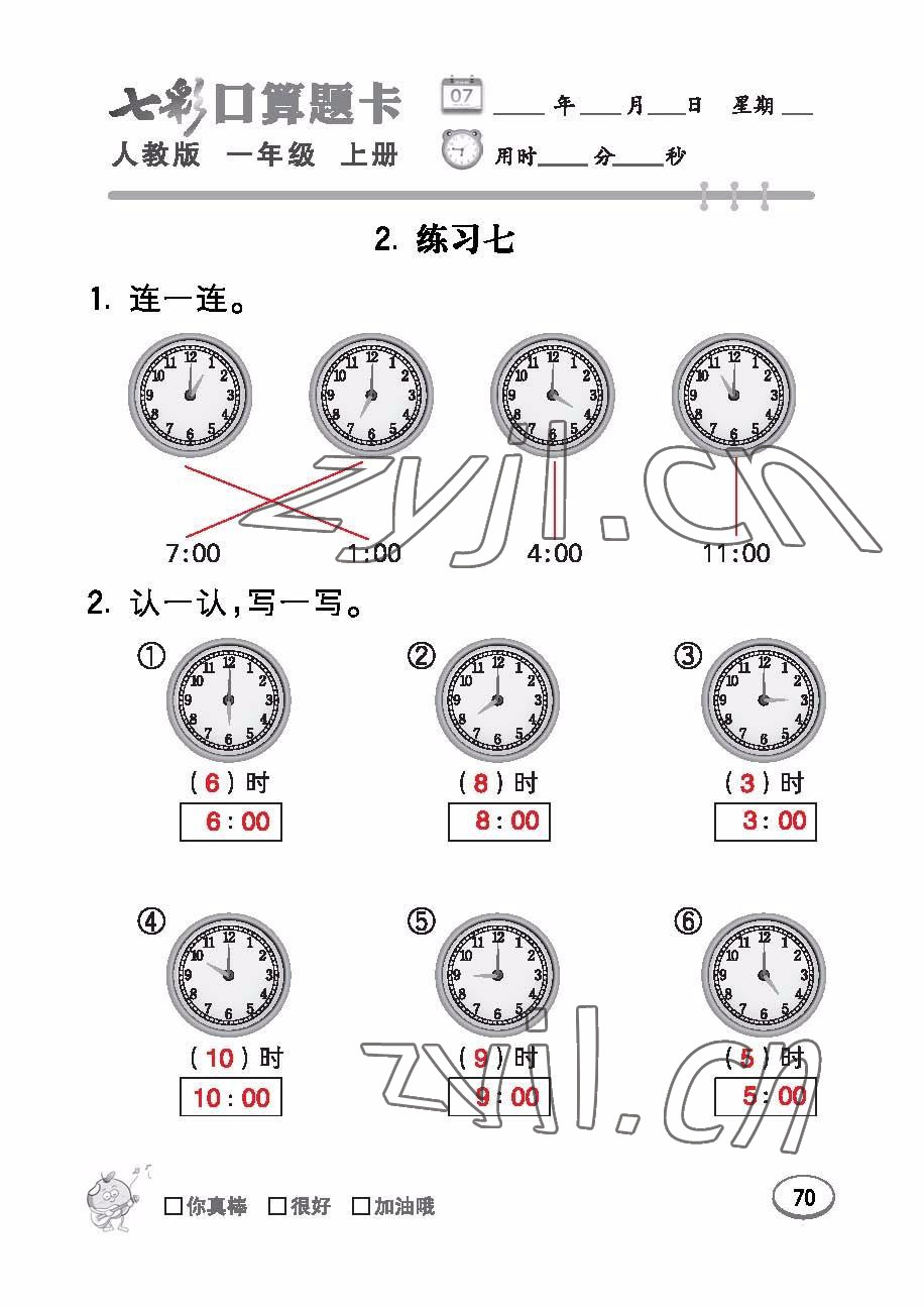 注:目前有些书本章节名称可能整理的还不是很完善,但都是按照顺序排列的,请同学们按照顺序仔细查找。练习册 2022年七彩口算题卡一年级数学上册人教版 答案主要是用来给同学们做完题方便对答案用的,请勿直接抄袭。