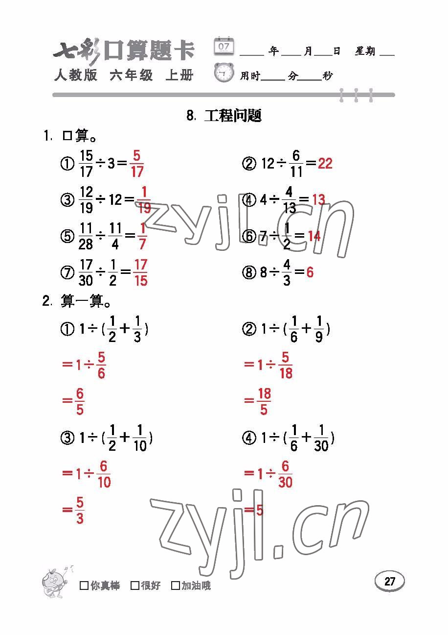 注:目前有些书本章节名称可能整理的还不是很完善,但都是按照顺序排列的,请同学们按照顺序仔细查找。练习册 2022年七彩口算题卡六年级数学上册人教版 答案主要是用来给同学们做完题方便对答案用的,请勿直接抄袭。