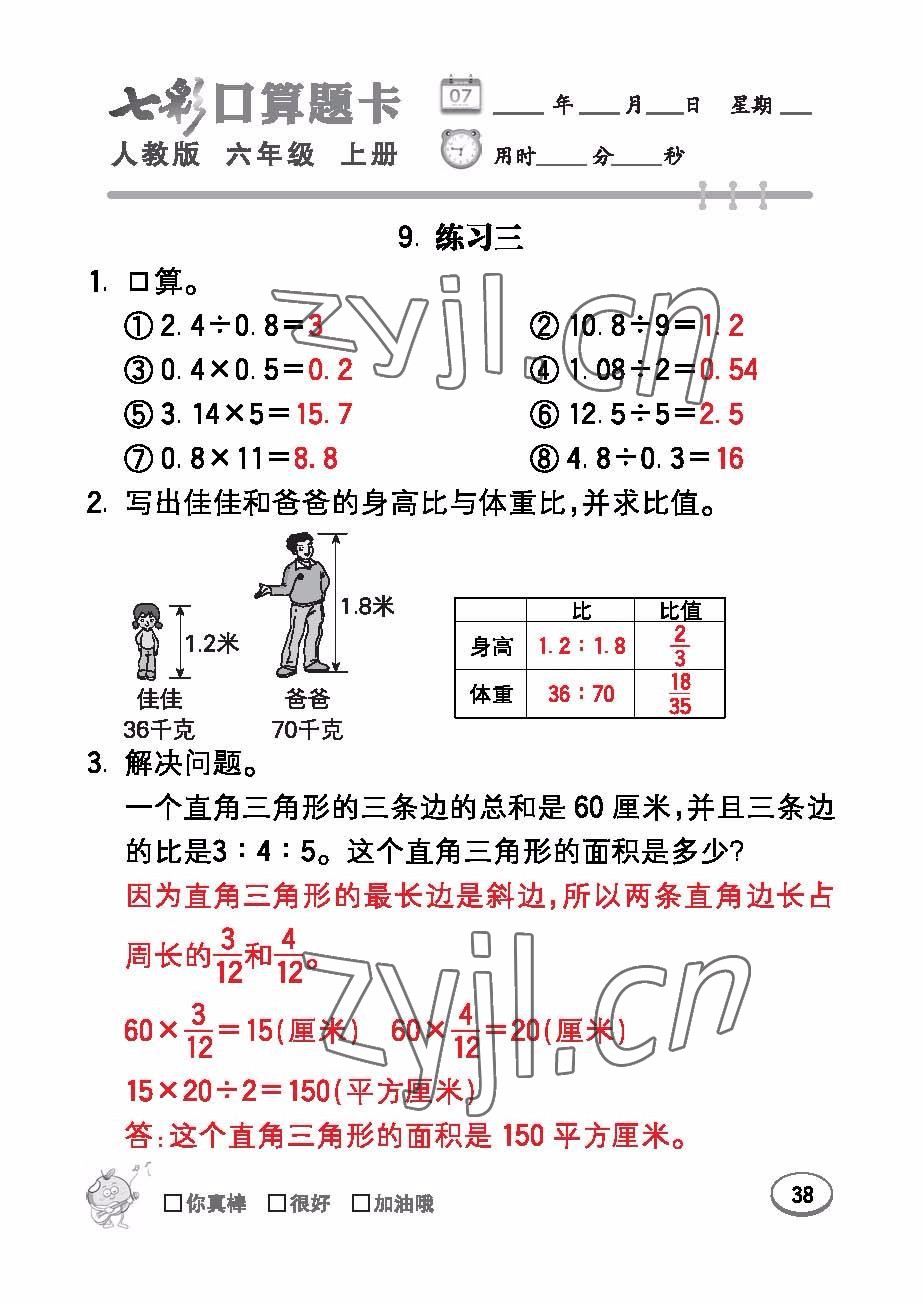 注:目前有些书本章节名称可能整理的还不是很完善,但都是按照顺序排列的,请同学们按照顺序仔细查找。练习册 2022年七彩口算题卡六年级数学上册人教版 答案主要是用来给同学们做完题方便对答案用的,请勿直接抄袭。