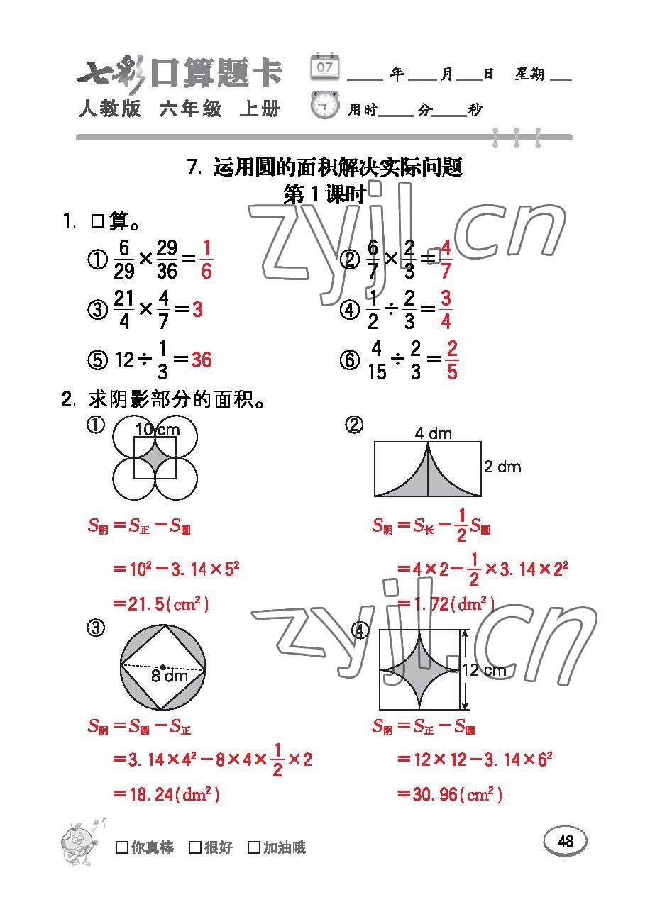 注:目前有些书本章节名称可能整理的还不是很完善,但都是按照顺序排列的,请同学们按照顺序仔细查找。练习册 2022年七彩口算题卡六年级数学上册人教版 答案主要是用来给同学们做完题方便对答案用的,请勿直接抄袭。