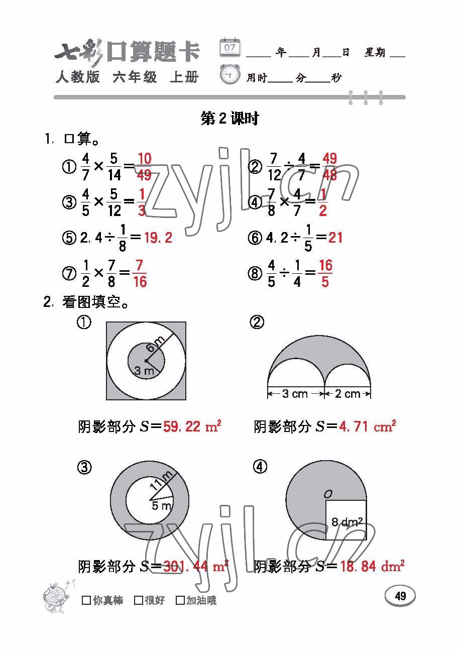 注:目前有些书本章节名称可能整理的还不是很完善,但都是按照顺序排列的,请同学们按照顺序仔细查找。练习册 2022年七彩口算题卡六年级数学上册人教版 答案主要是用来给同学们做完题方便对答案用的,请勿直接抄袭。