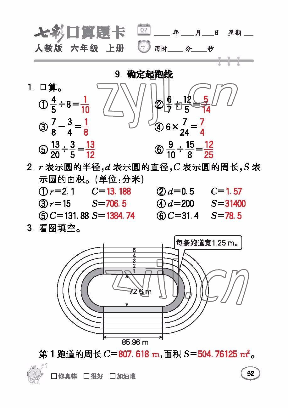 注:目前有些书本章节名称可能整理的还不是很完善,但都是按照顺序排列的,请同学们按照顺序仔细查找。练习册 2022年七彩口算题卡六年级数学上册人教版 答案主要是用来给同学们做完题方便对答案用的,请勿直接抄袭。