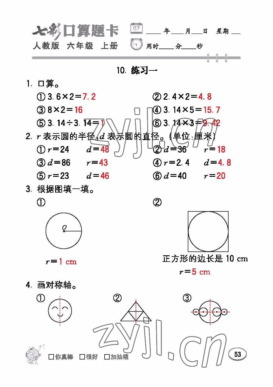 注:目前有些书本章节名称可能整理的还不是很完善,但都是按照顺序排列的,请同学们按照顺序仔细查找。练习册 2022年七彩口算题卡六年级数学上册人教版 答案主要是用来给同学们做完题方便对答案用的,请勿直接抄袭。