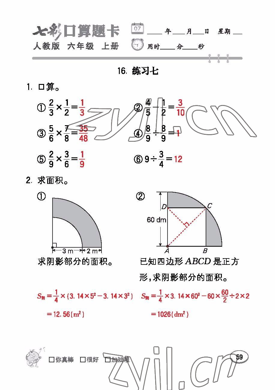 注:目前有些书本章节名称可能整理的还不是很完善,但都是按照顺序排列的,请同学们按照顺序仔细查找。练习册 2022年七彩口算题卡六年级数学上册人教版 答案主要是用来给同学们做完题方便对答案用的,请勿直接抄袭。