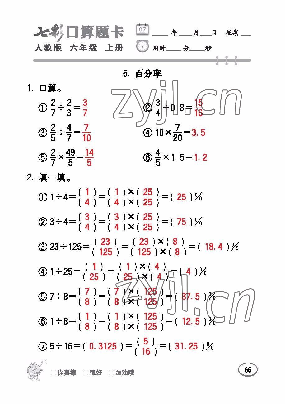 注:目前有些书本章节名称可能整理的还不是很完善,但都是按照顺序排列的,请同学们按照顺序仔细查找。练习册 2022年七彩口算题卡六年级数学上册人教版 答案主要是用来给同学们做完题方便对答案用的,请勿直接抄袭。