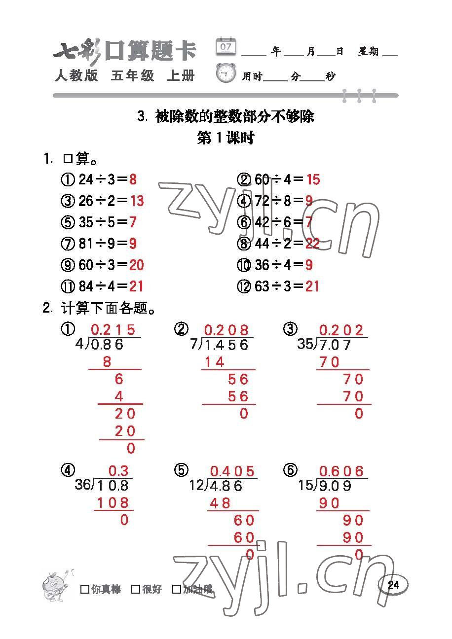 注:目前有些书本章节名称可能整理的还不是很完善,但都是按照顺序排列的,请同学们按照顺序仔细查找。练习册 2022年七彩口算题卡五年级数学上册人教版 答案主要是用来给同学们做完题方便对答案用的,请勿直接抄袭。