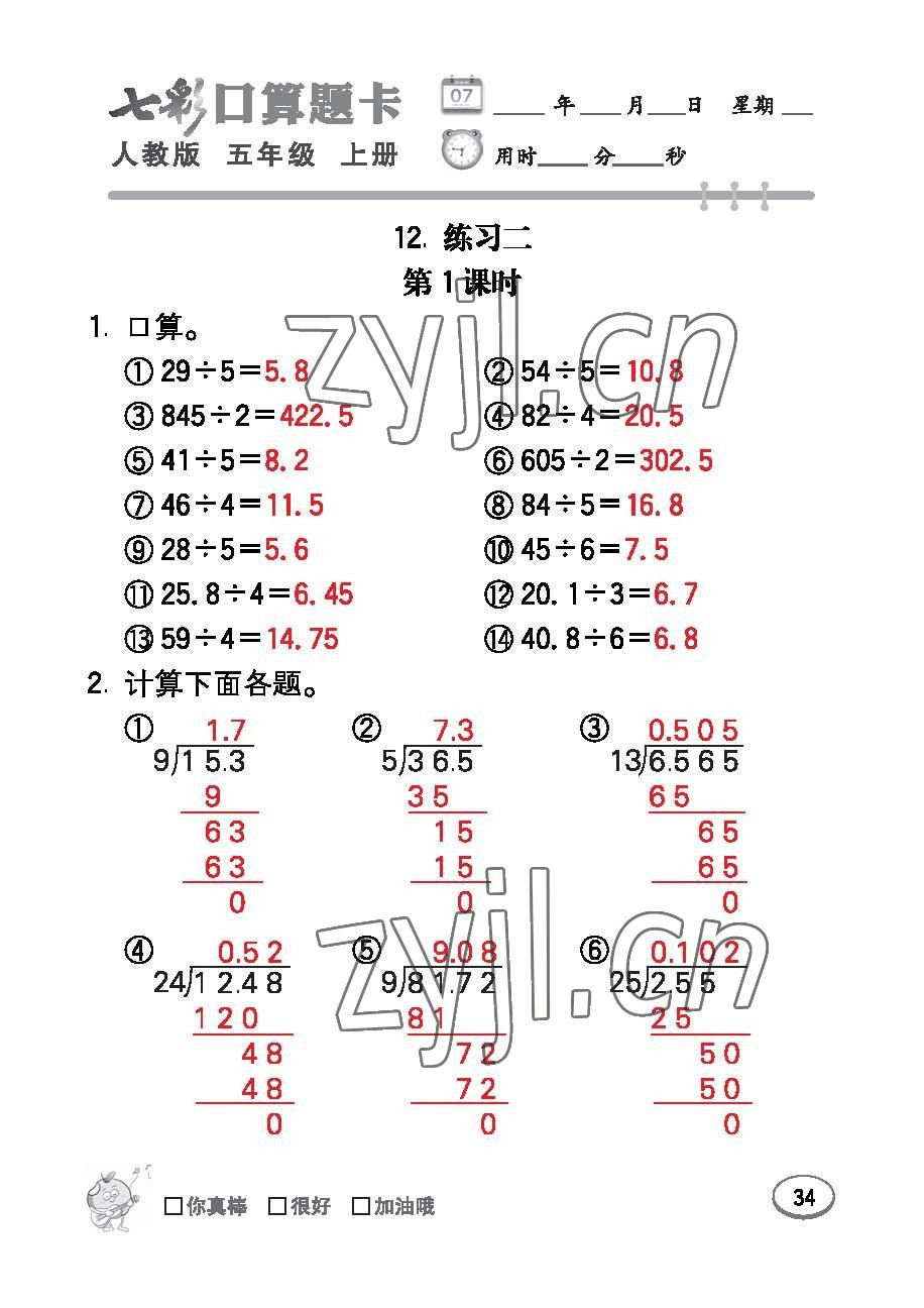 注:目前有些书本章节名称可能整理的还不是很完善,但都是按照顺序排列的,请同学们按照顺序仔细查找。练习册 2022年七彩口算题卡五年级数学上册人教版 答案主要是用来给同学们做完题方便对答案用的,请勿直接抄袭。