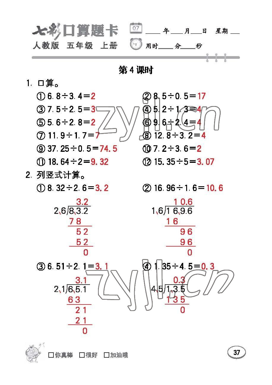 注:目前有些书本章节名称可能整理的还不是很完善,但都是按照顺序排列的,请同学们按照顺序仔细查找。练习册 2022年七彩口算题卡五年级数学上册人教版 答案主要是用来给同学们做完题方便对答案用的,请勿直接抄袭。