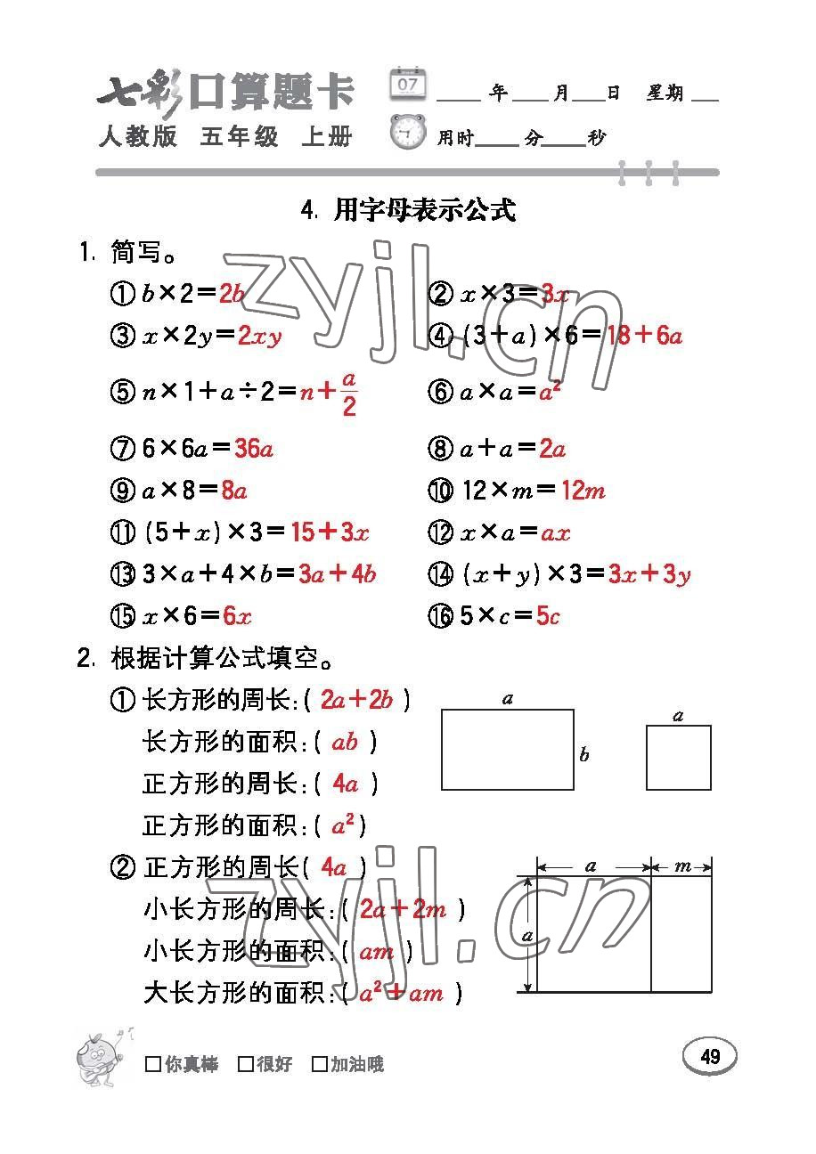 注:目前有些书本章节名称可能整理的还不是很完善,但都是按照顺序排列的,请同学们按照顺序仔细查找。练习册 2022年七彩口算题卡五年级数学上册人教版 答案主要是用来给同学们做完题方便对答案用的,请勿直接抄袭。