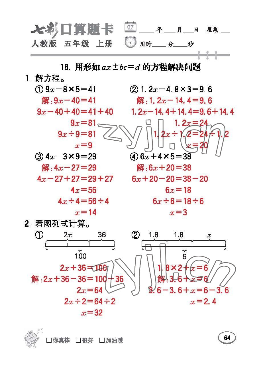 注:目前有些书本章节名称可能整理的还不是很完善,但都是按照顺序排列的,请同学们按照顺序仔细查找。练习册 2022年七彩口算题卡五年级数学上册人教版 答案主要是用来给同学们做完题方便对答案用的,请勿直接抄袭。