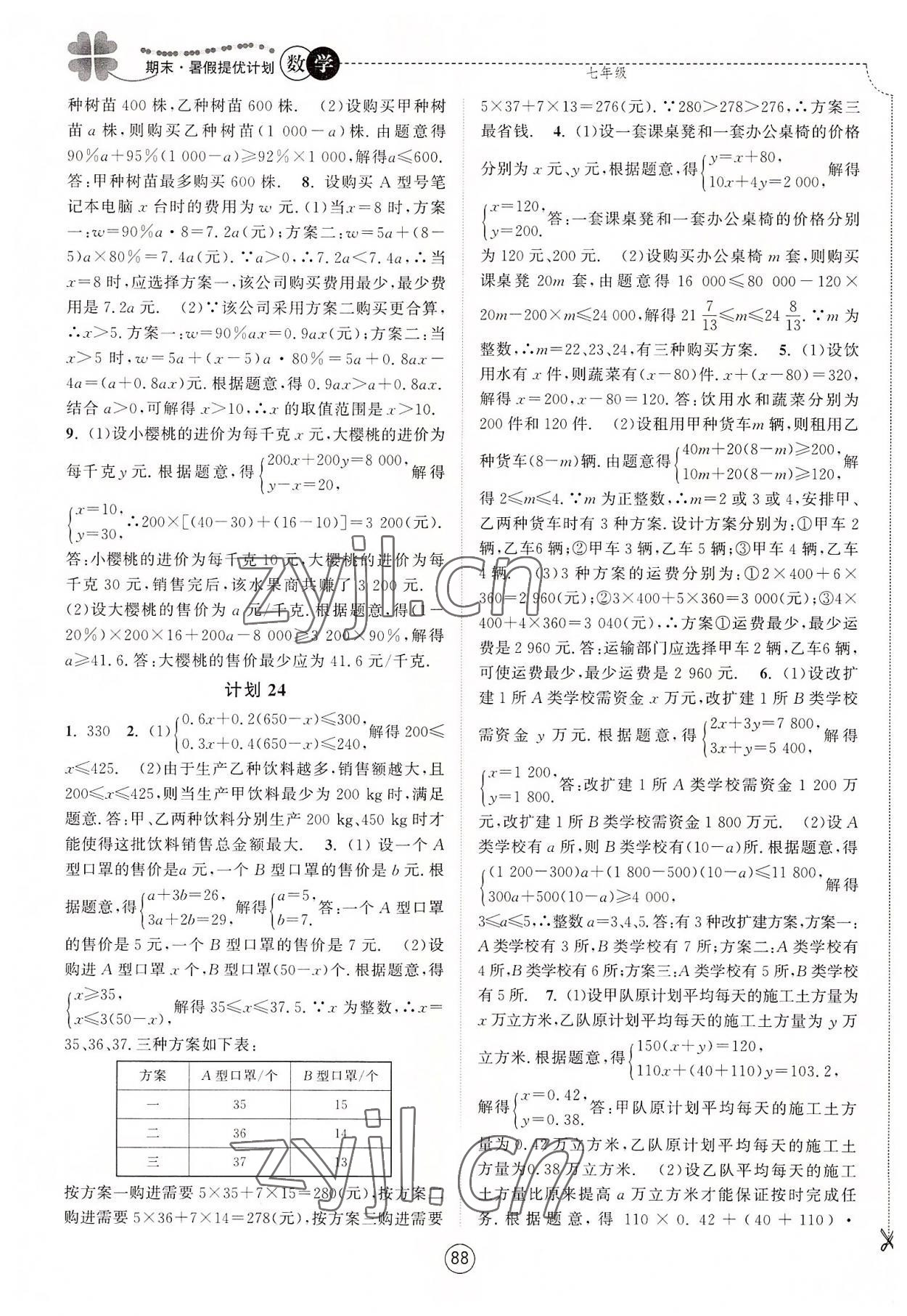 注:目前有些书本章节名称可能整理的还不是很完善,但都是按照顺序排列的,请同学们按照顺序仔细查找。练习册 2022年期末暑假提优计划七年级数学苏科版 答案主要是用来给同学们做完题方便对答案用的,请勿直接抄袭。