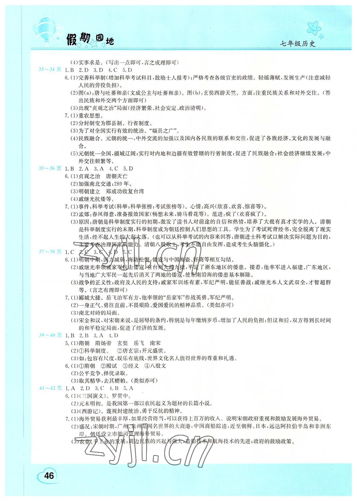 2022年新锐图书假期园地暑假作业中原农民出版社七年级历史