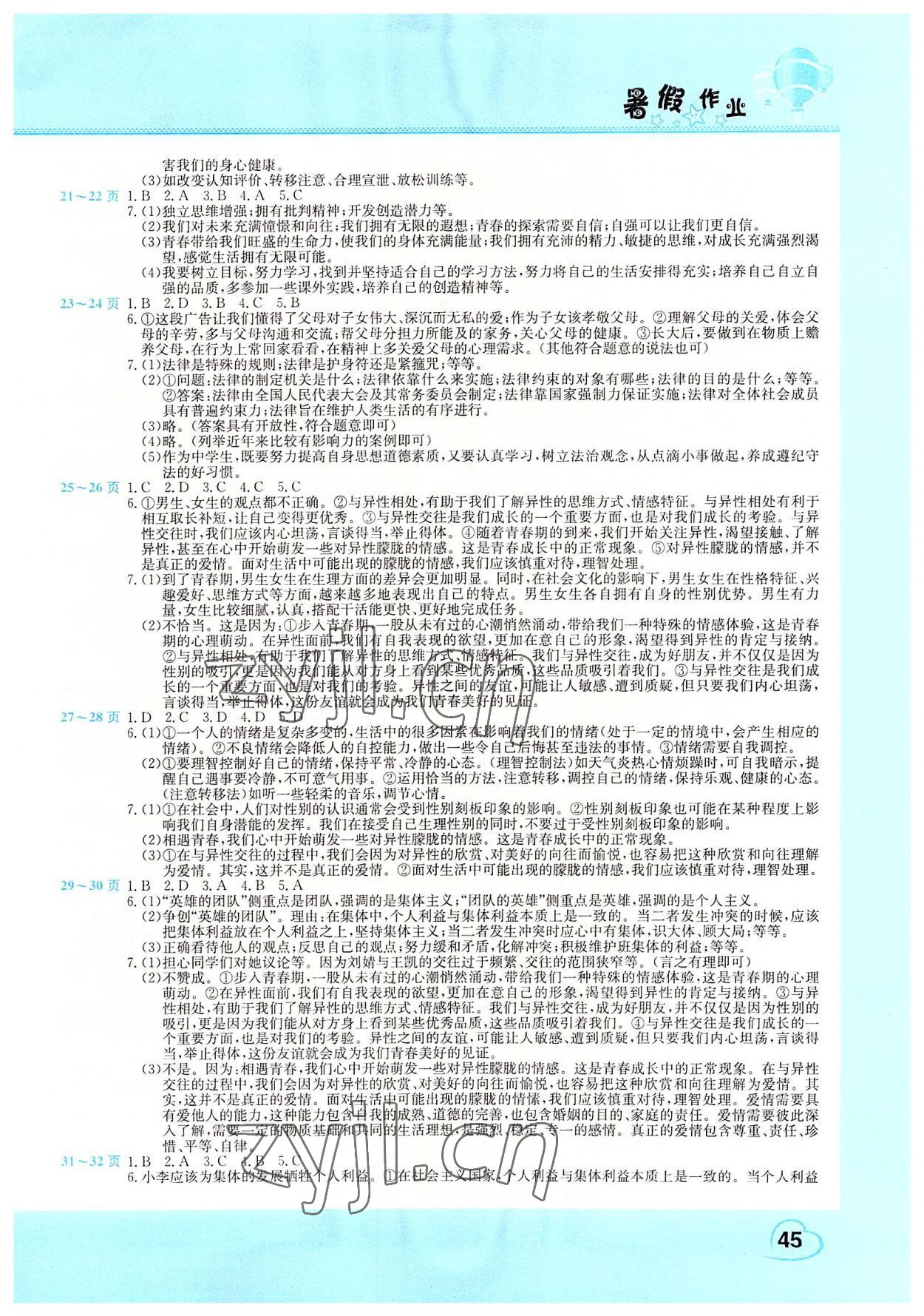 2022年新锐图书假期园地暑假作业七年级道德与法治中原农民出版社