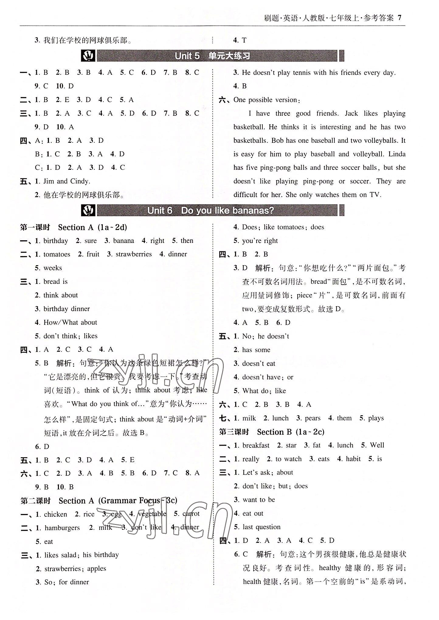 《2022年北大绿卡刷题七年级英语上册人教版》