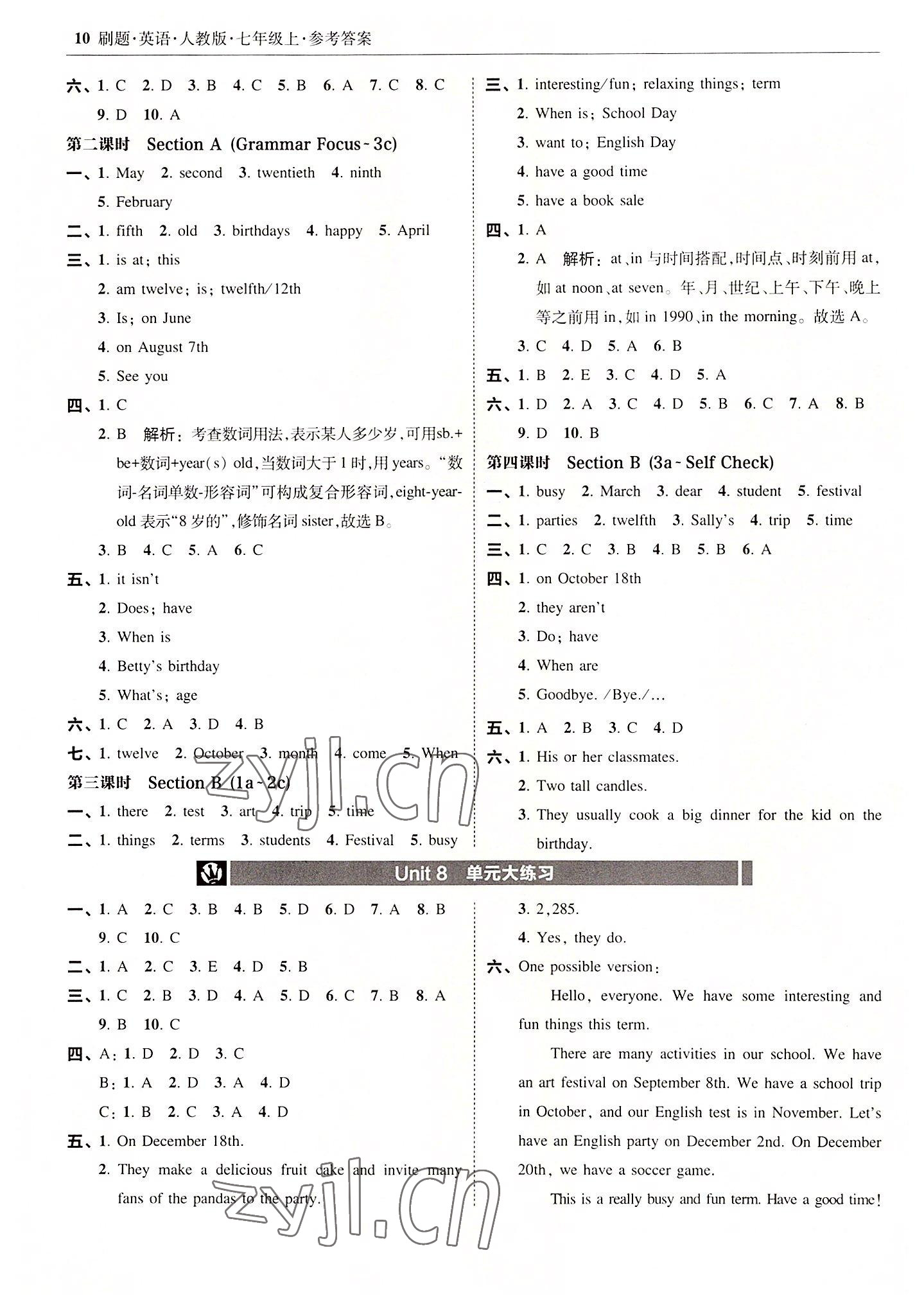 注:目前有些书本章节名称可能整理的还不是很完善,但都是按照顺序排列的,请同学们按照顺序仔细查找。练习册 2022年北大绿卡刷题七年级英语上册人教版 答案主要是用来给同学们做完题方便对答案用的,请勿直接抄袭。