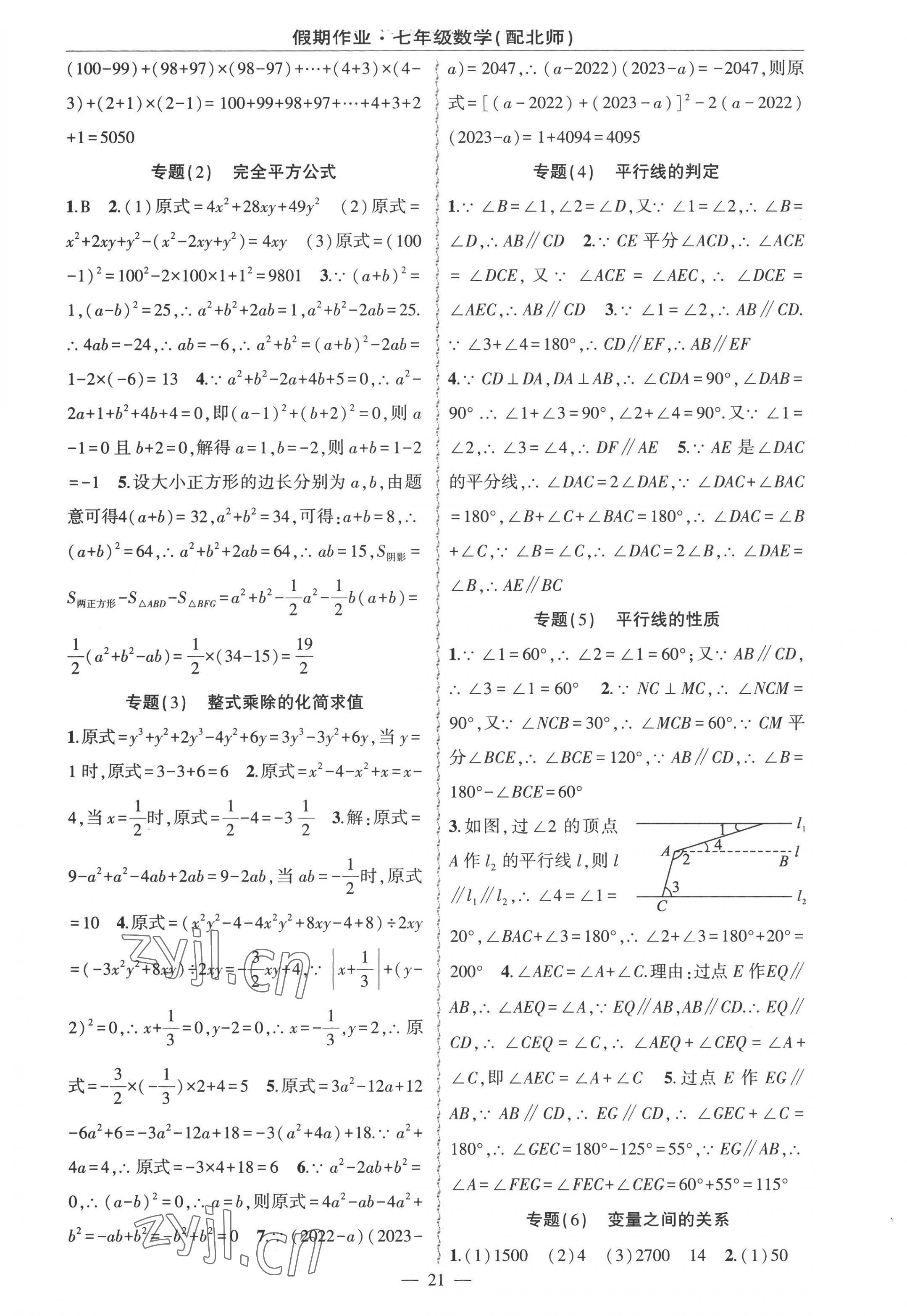 注:目前有些书本章节名称可能整理的还不是很完善,但都是按照顺序排列的,请同学们按照顺序仔细查找。练习册 2022年快乐驿站假期作业期末暑假衔接七年级数学北师大版 答案主要是用来给同学们做完题方便对答案用的,请勿直接抄袭。