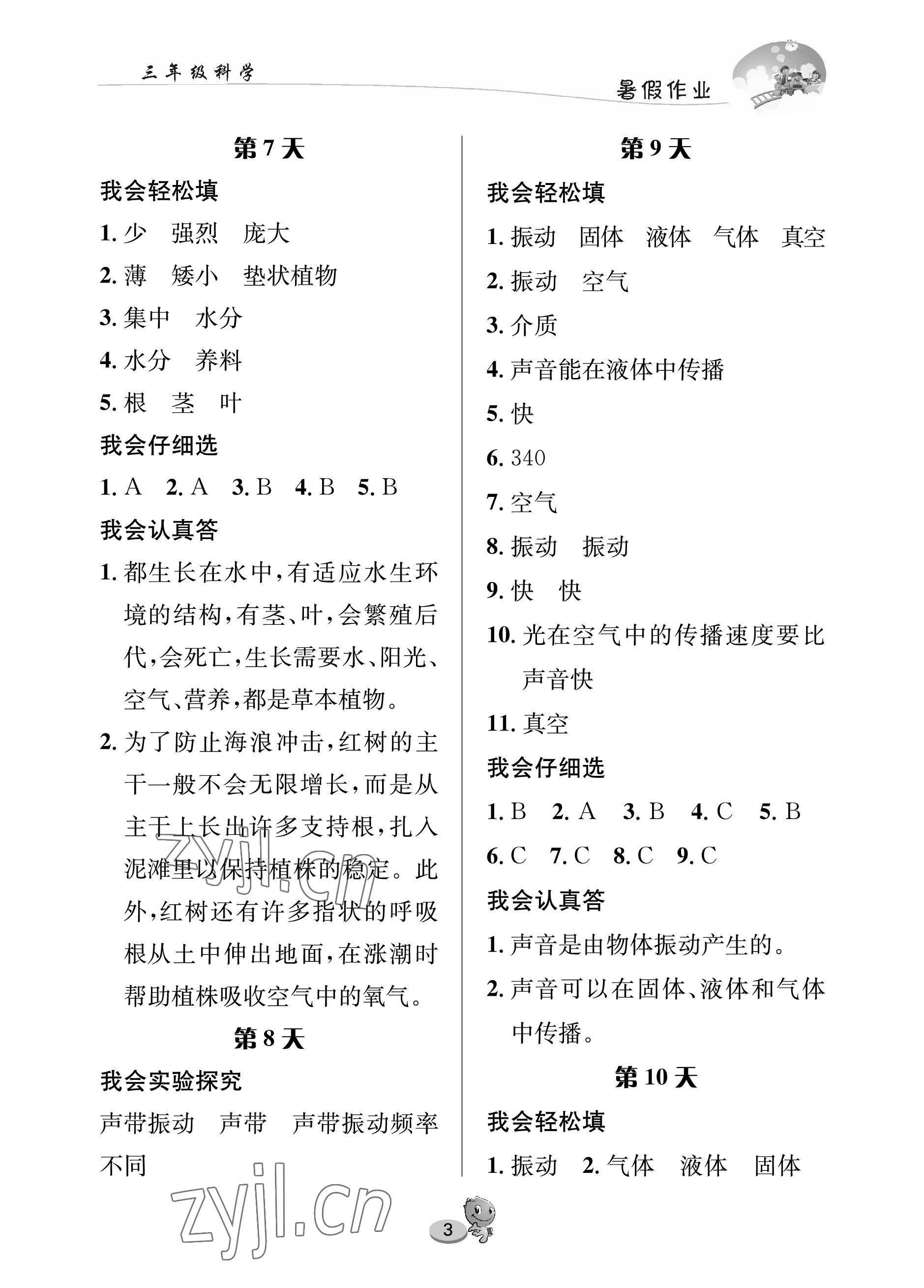 《2022年暑假作业长江出版社三年级科学苏教版》