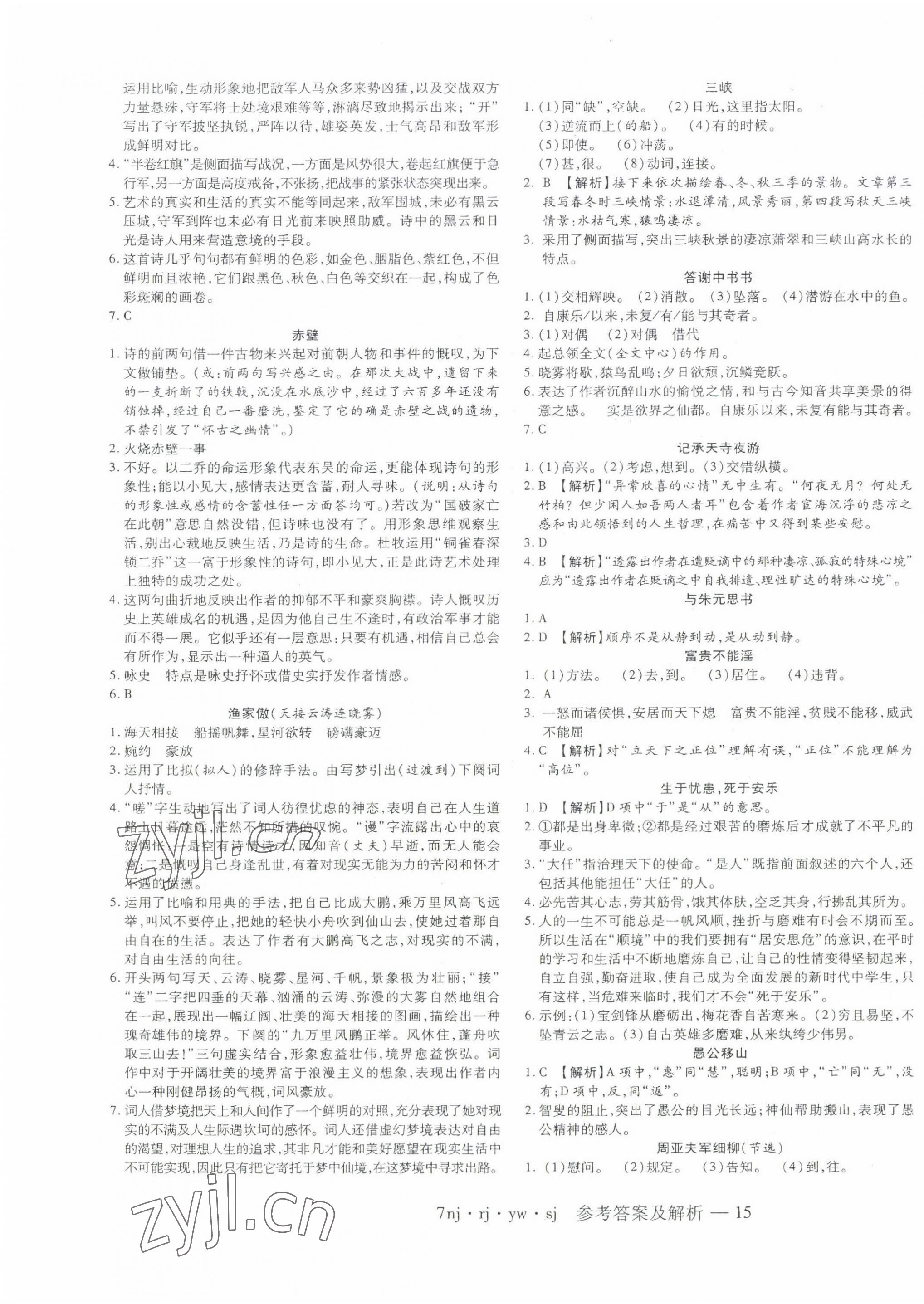 《2022年金象教育U计划学期系统复习暑假作业七年级语文人教版》