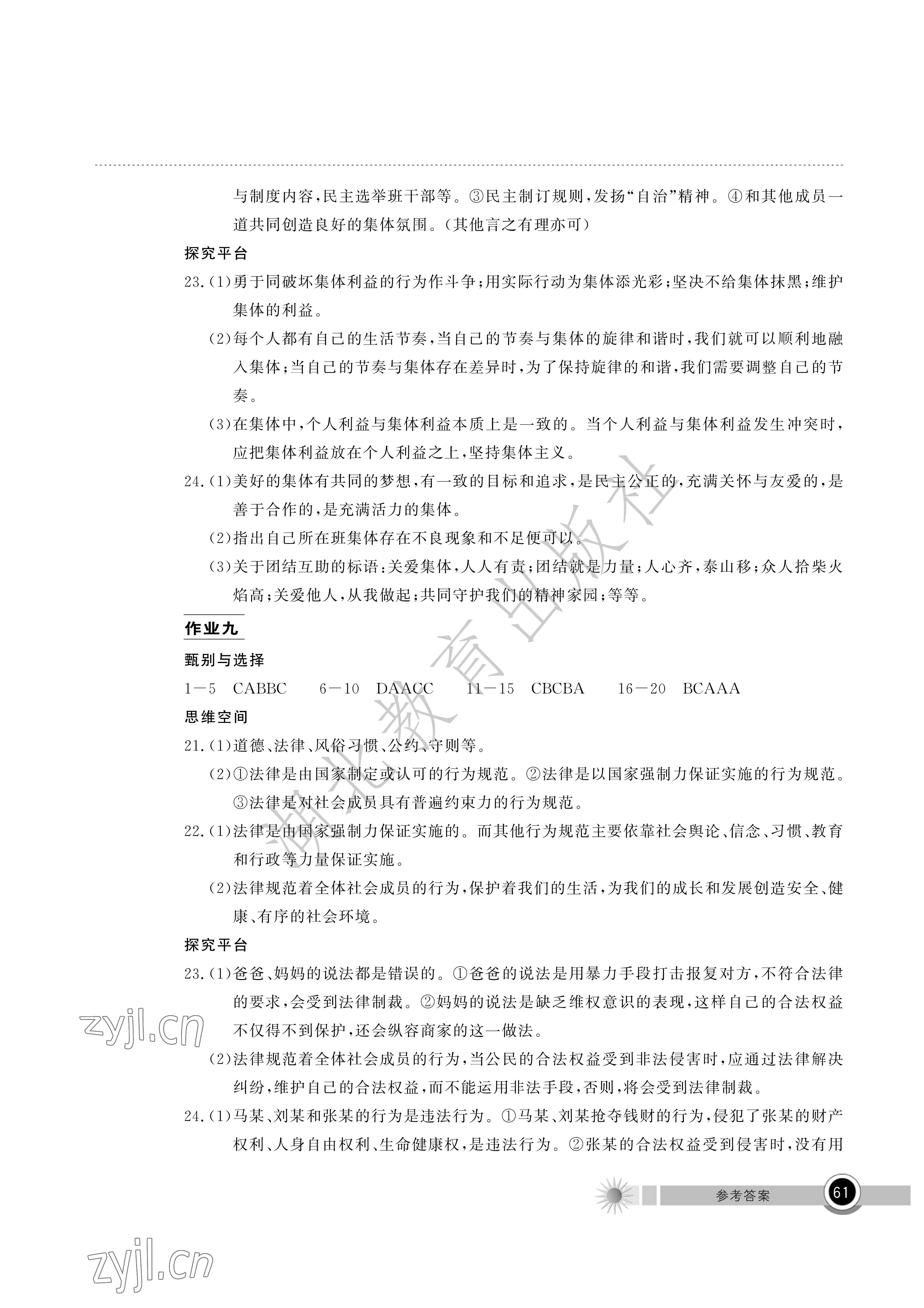 注:目前有些书本章节名称可能整理的还不是很完善,但都是按照顺序排列的,请同学们按照顺序仔细查找。练习册 2022年长江作业本暑假作业七年级道德与法治湖北教育出版社 答案主要是用来给同学们做完题方便对答案用的,请勿直接抄袭。