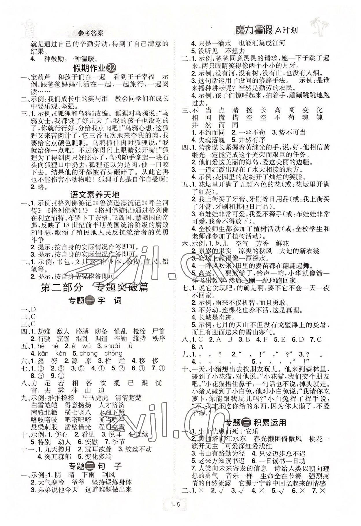 2022年魔力暑假A计划四年级语文人教版江西美术出版社