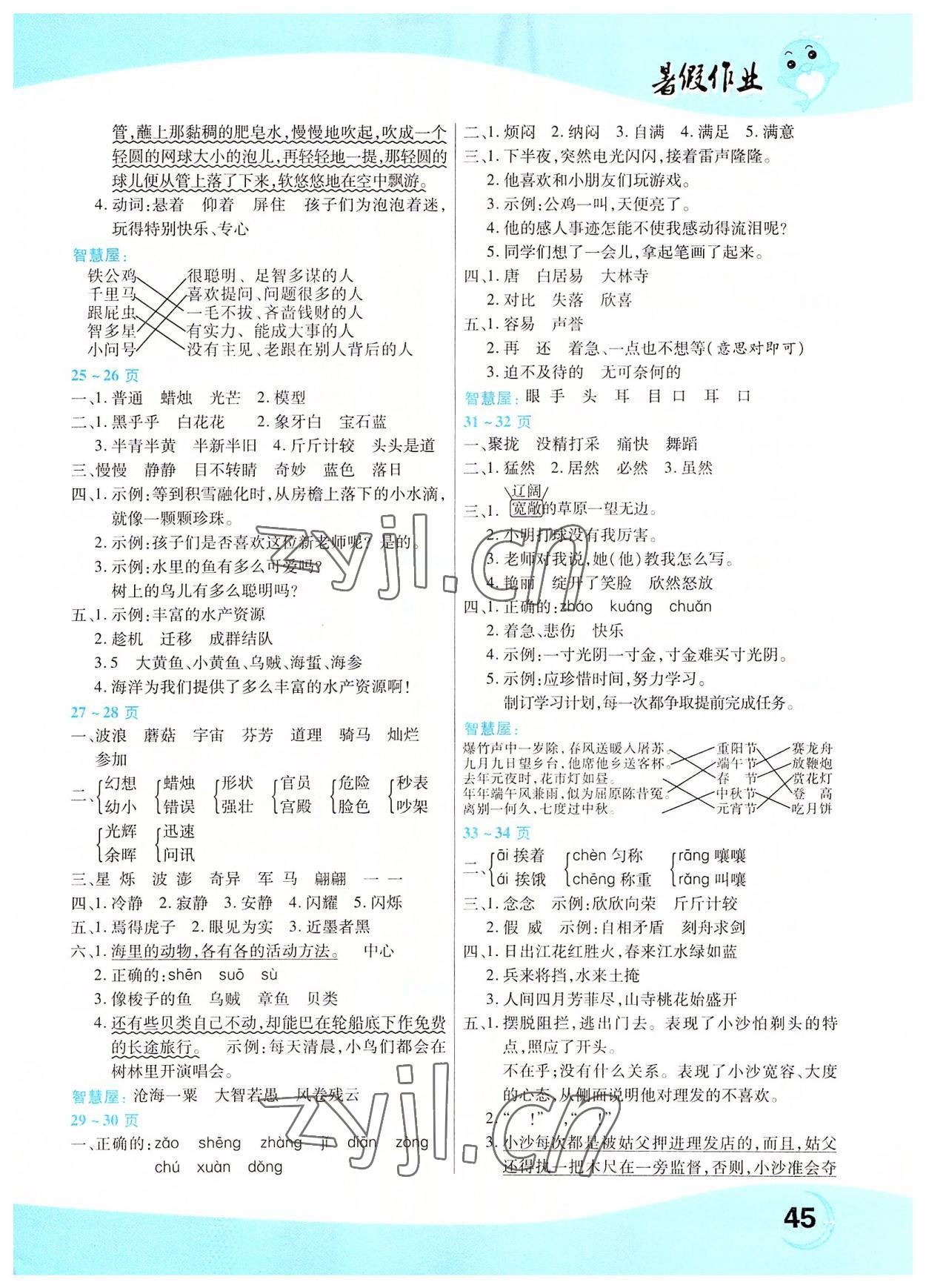 2022年豫新锐暑假作业中原农民出版社三年级语文人教版