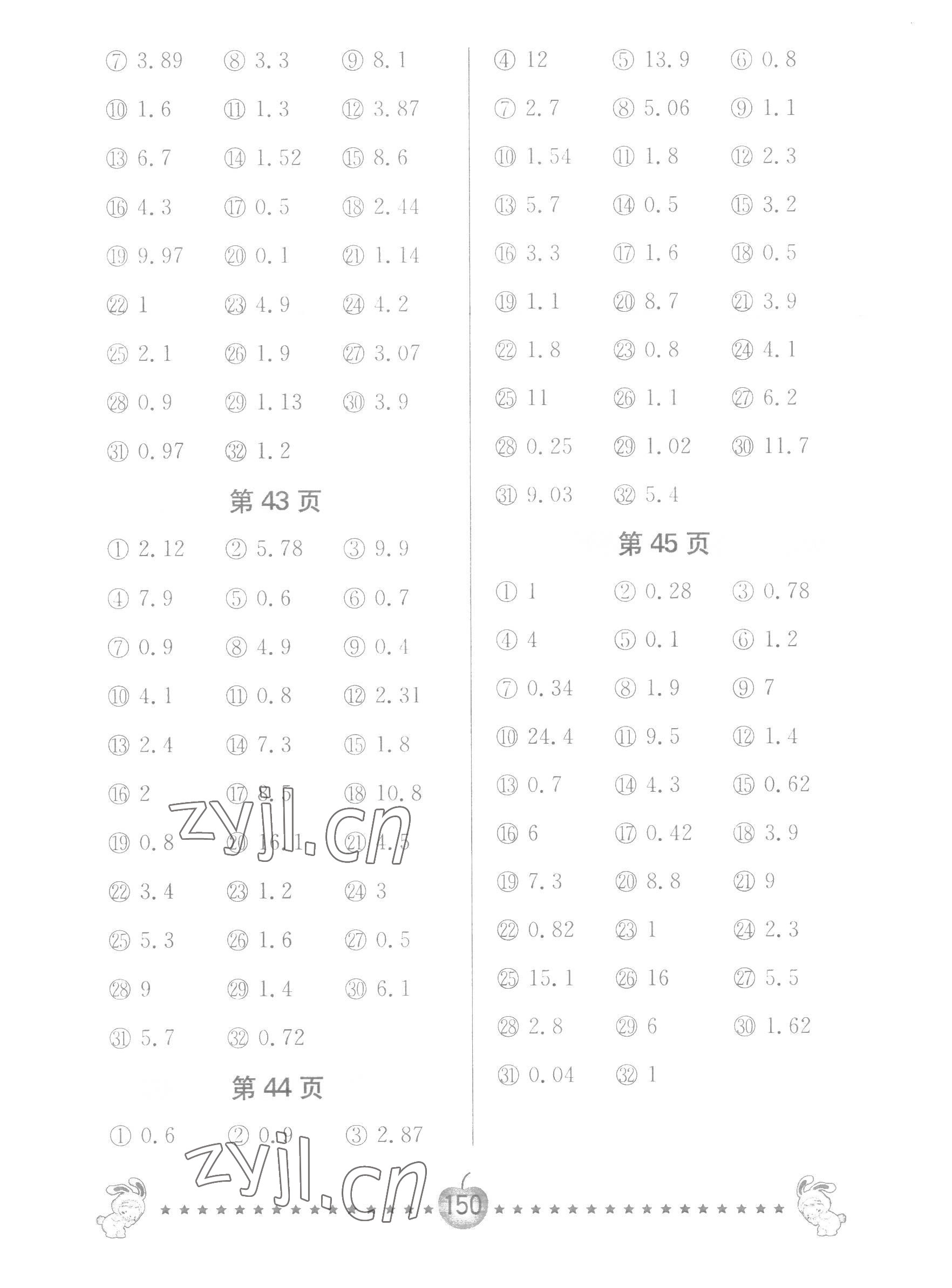2022年口算题卡南京大学出版社五年级数学上册苏教版