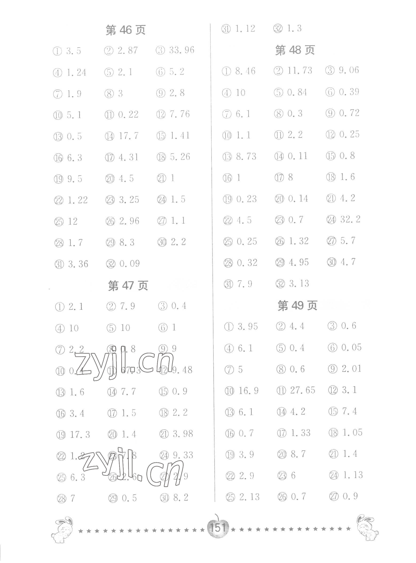 2022年口算题卡南京大学出版社五年级数学上册苏教版