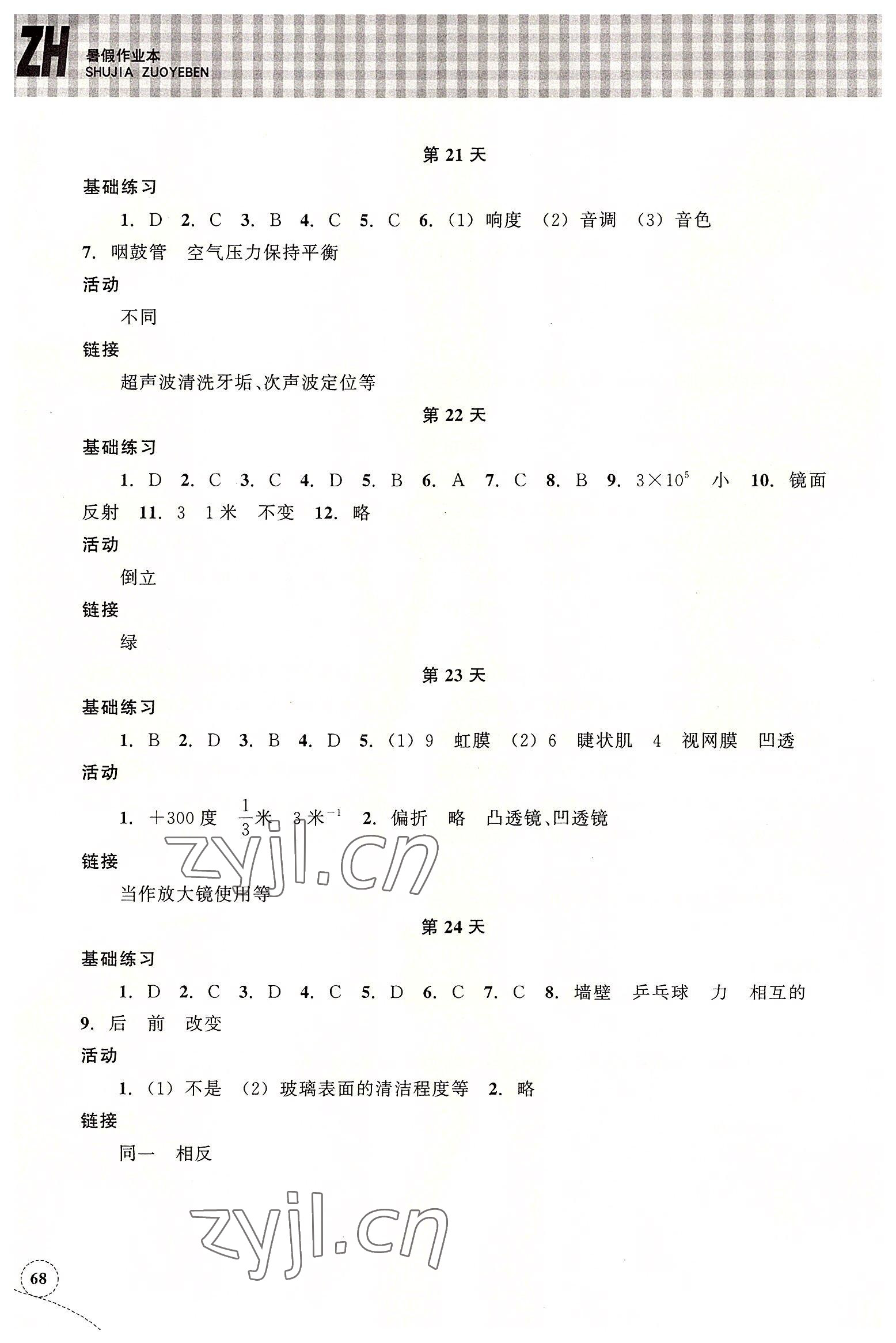 2022年暑假作业本浙江教育出版社七年级科学浙教版
