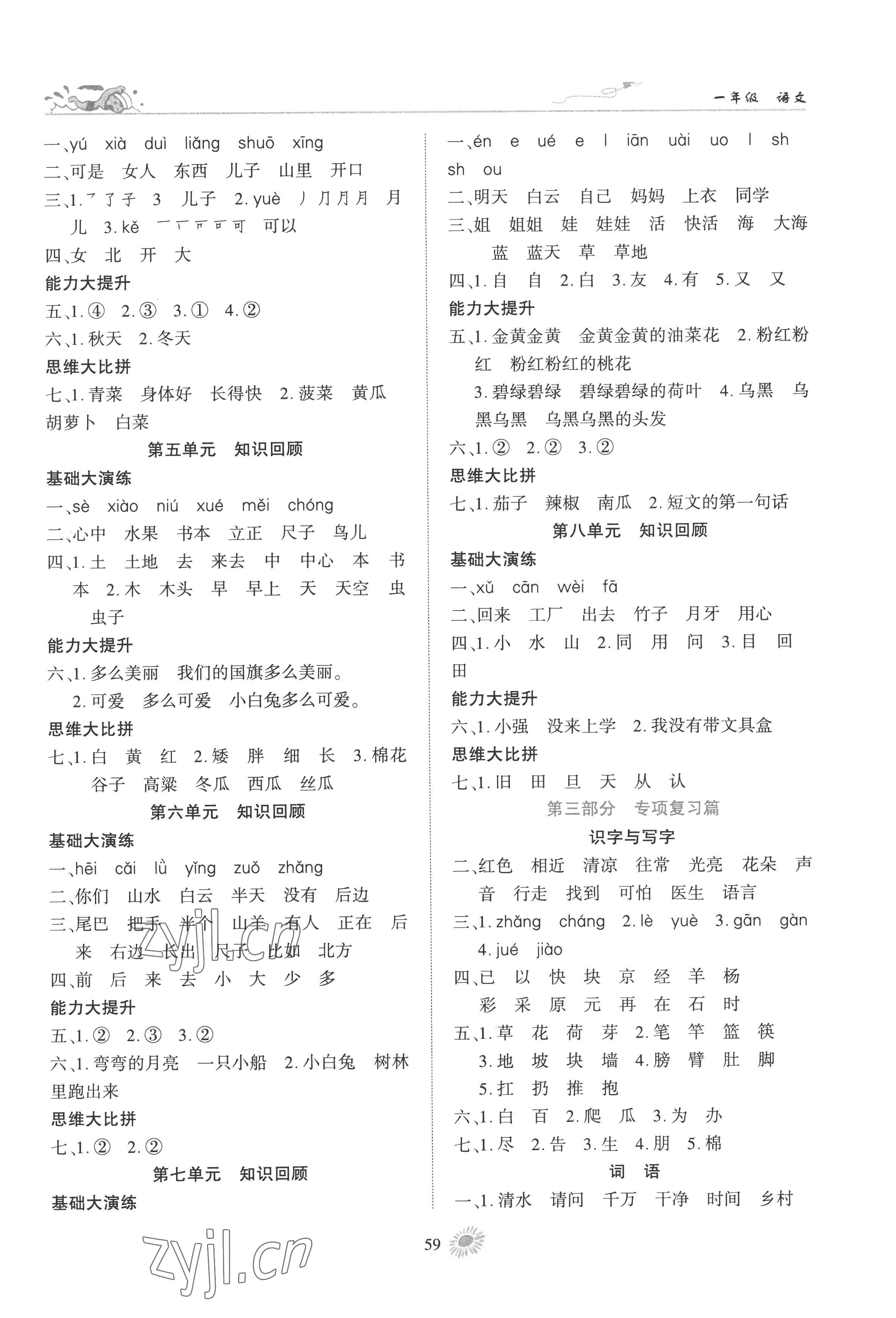 注:目前有些书本章节名称可能整理的还不是很完善,但都是按照顺序排列的,请同学们按照顺序仔细查找。练习册 2022年假期特训年度总复习一年级语文人教版 答案主要是用来给同学们做完题方便对答案用的,请勿直接抄袭。