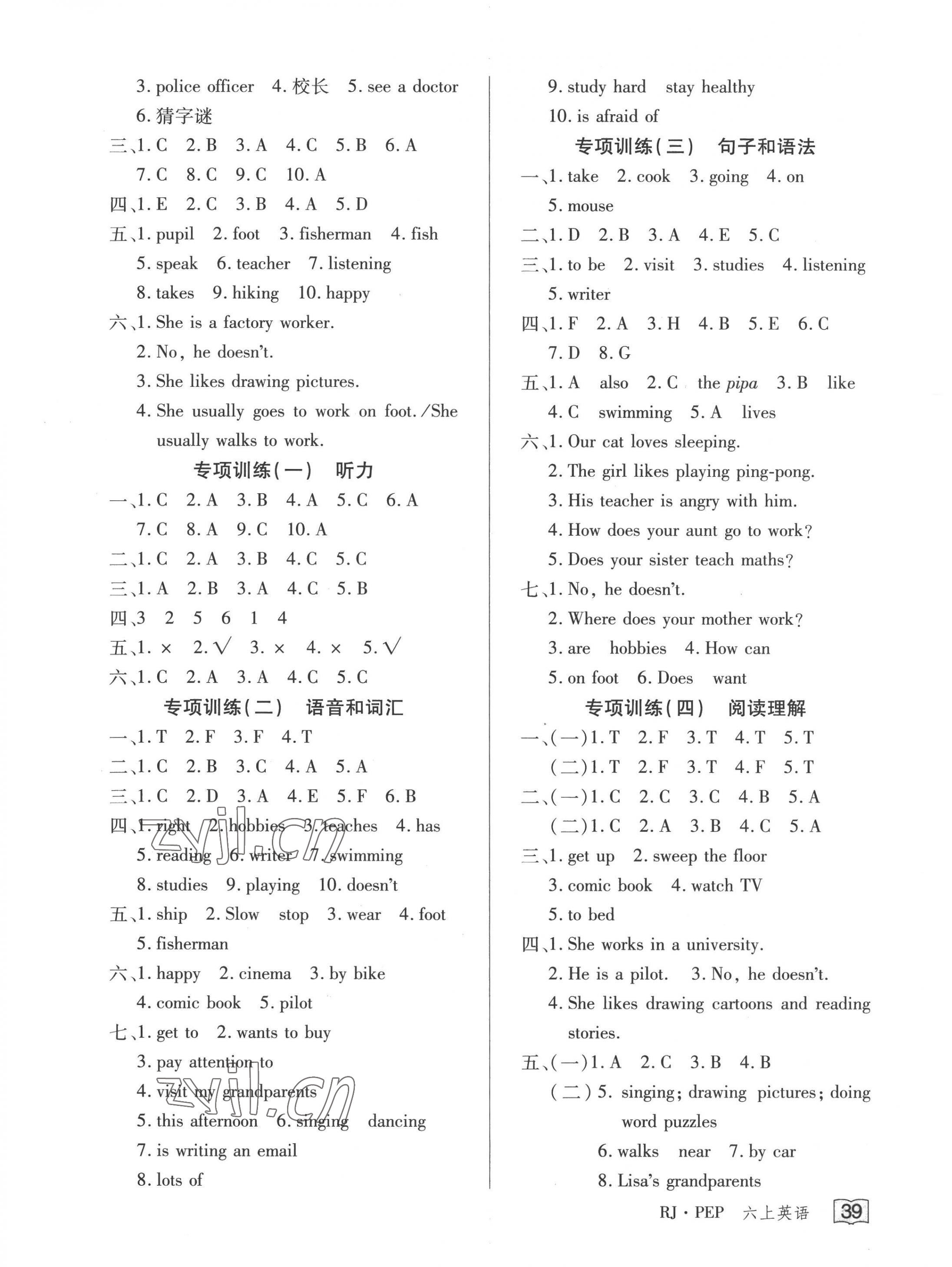 注:目前有些书本章节名称可能整理的还不是很完善,但都是按照顺序排列的,请同学们按照顺序仔细查找。练习册 2022年花儿与星星六年级英语上册人教版 答案主要是用来给同学们做完题方便对答案用的,请勿直接抄袭。