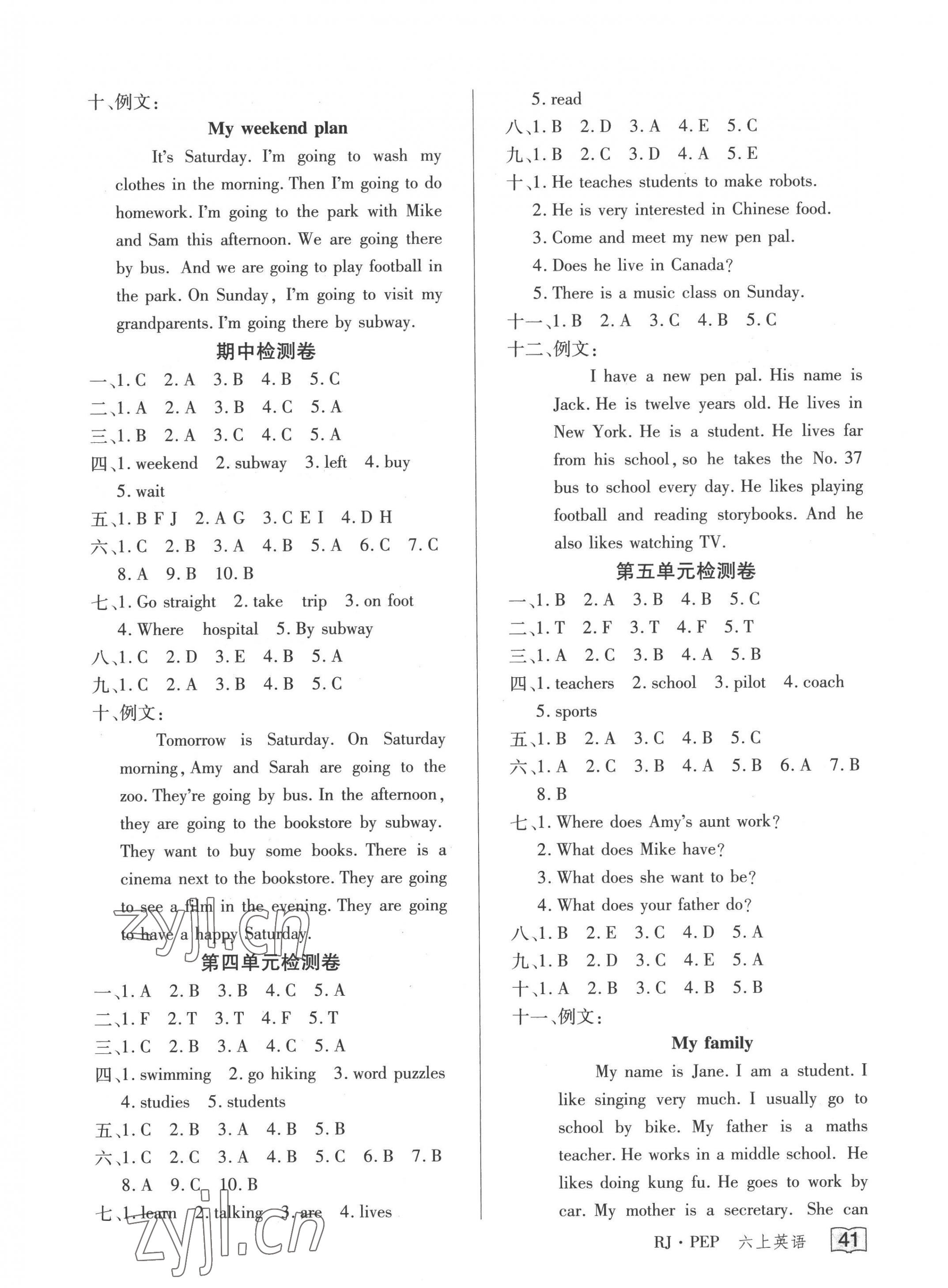 注:目前有些书本章节名称可能整理的还不是很完善,但都是按照顺序排列的,请同学们按照顺序仔细查找。练习册 2022年花儿与星星六年级英语上册人教版 答案主要是用来给同学们做完题方便对答案用的,请勿直接抄袭。