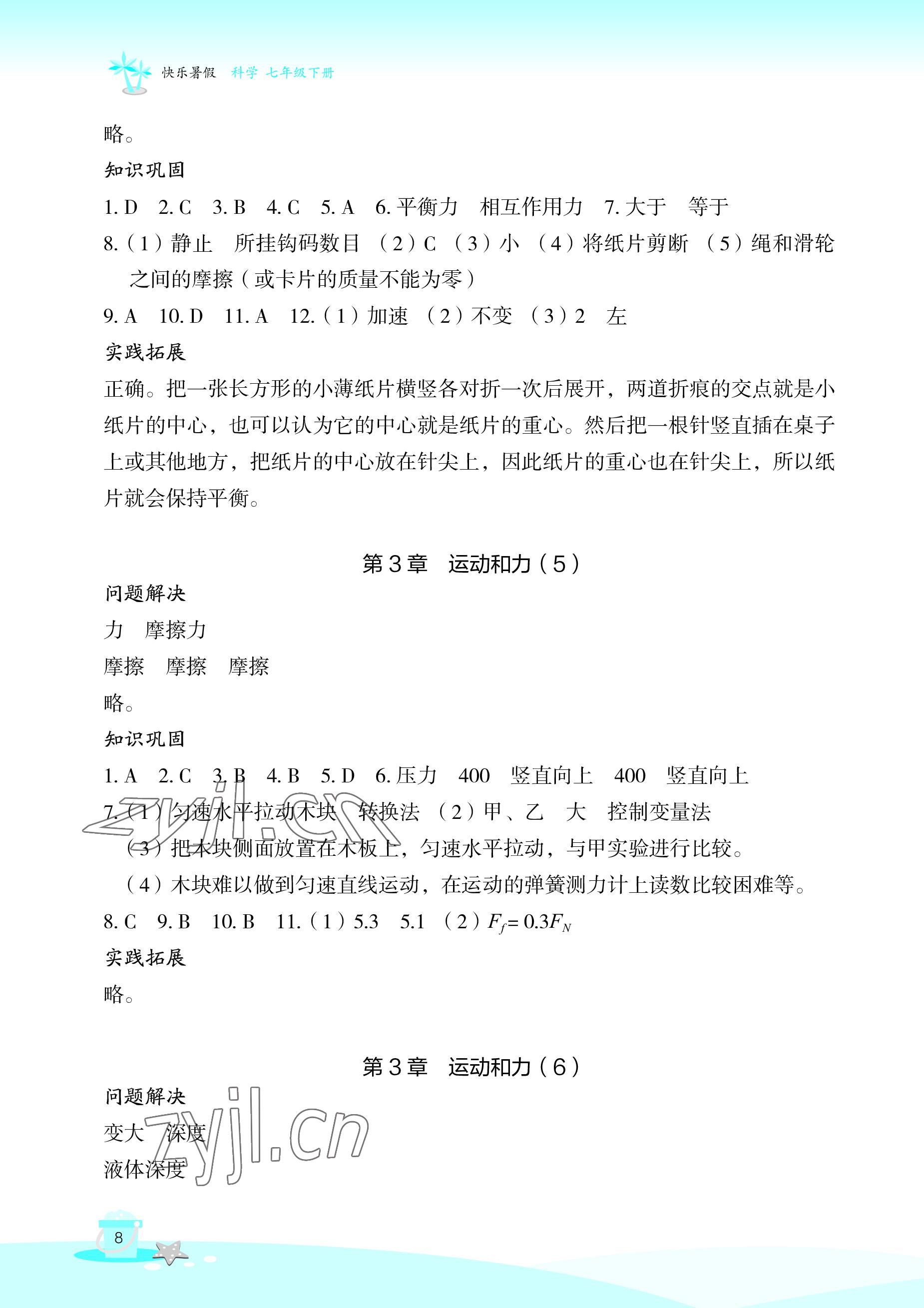 注:目前有些书本章节名称可能整理的还不是很完善,但都是按照顺序排列的,请同学们按照顺序仔细查找。练习册 2022年快乐暑假玩转假期活动手册七年级科学 答案主要是用来给同学们做完题方便对答案用的,请勿直接抄袭。