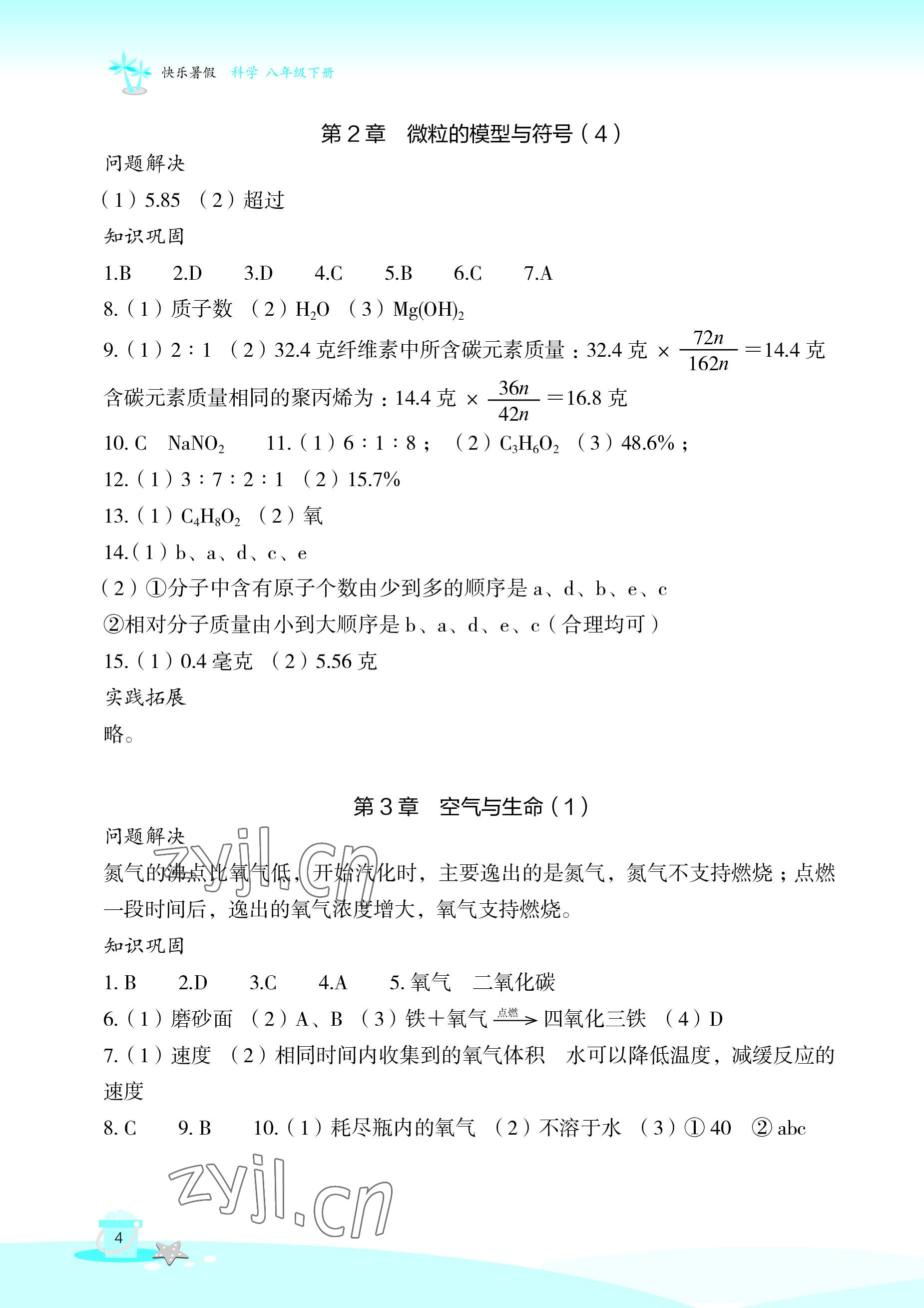 注:目前有些书本章节名称可能整理的还不是很完善,但都是按照顺序排列的,请同学们按照顺序仔细查找。练习册 2022年快乐暑假玩转假期活动手册八年级科学 答案主要是用来给同学们做完题方便对答案用的,请勿直接抄袭。