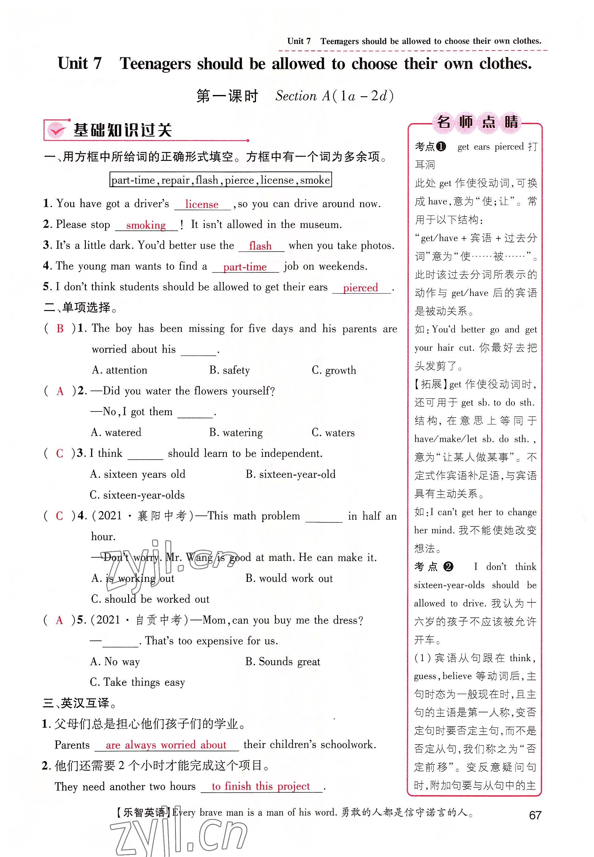 - 参考答案第67页